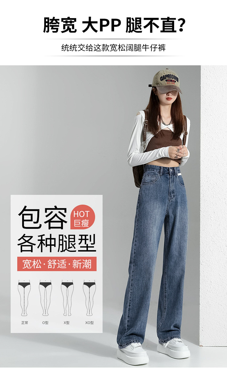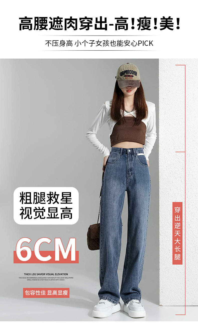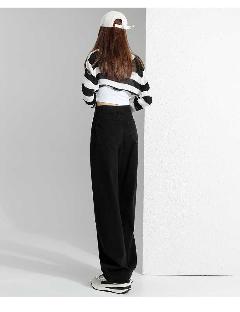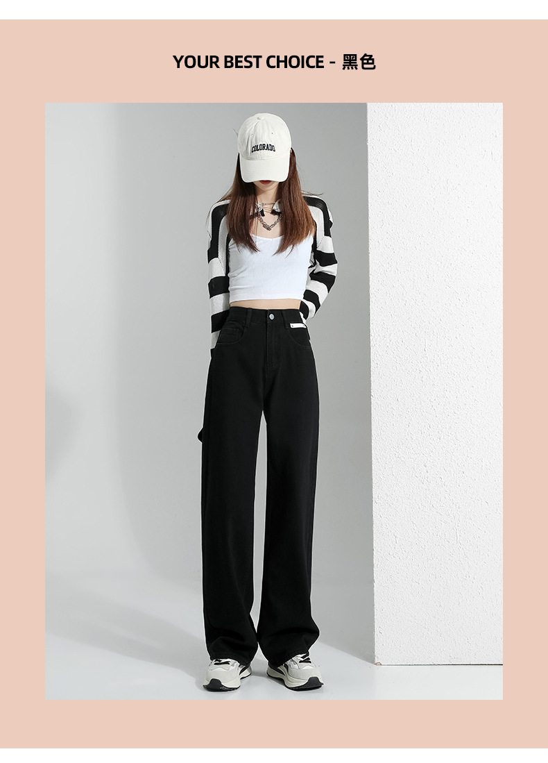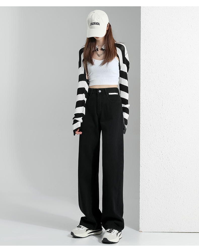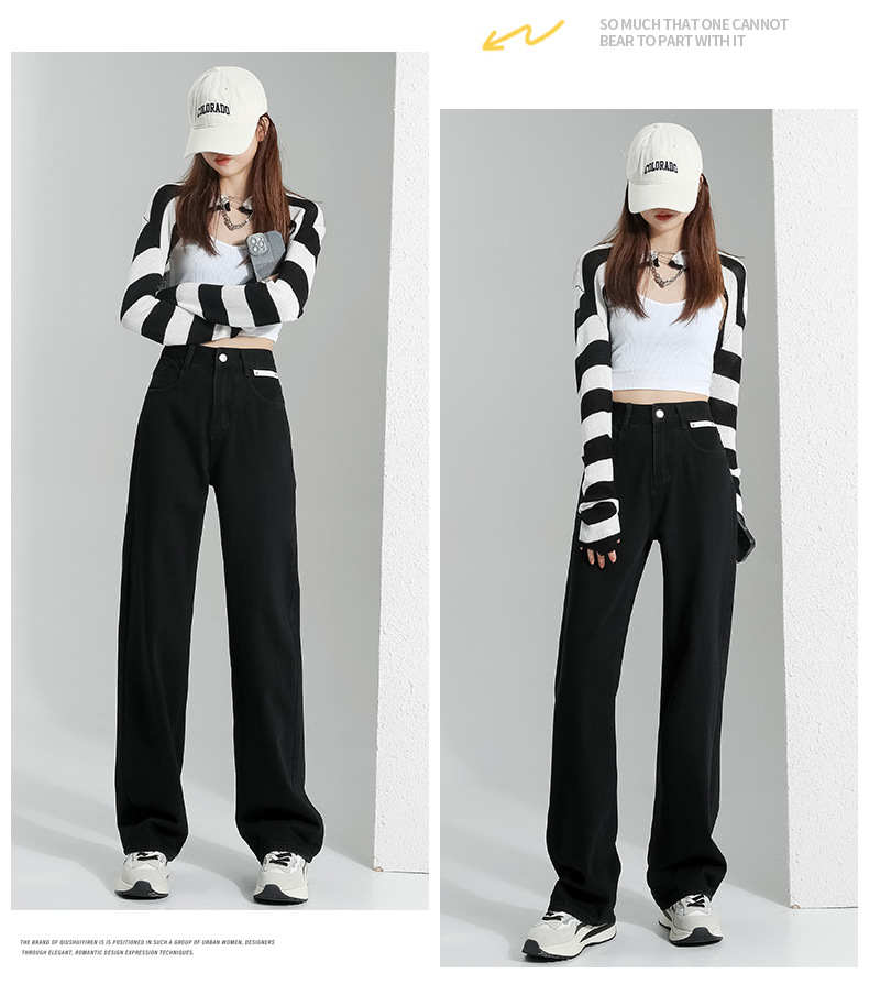하이 웨이스트 와이드 레그 청바지 여성용 봄과 가을 2023 새로운 슬리밍 모든 매치 루즈한 드레이핑 레트로 스트레이트 팬츠스토어 가기