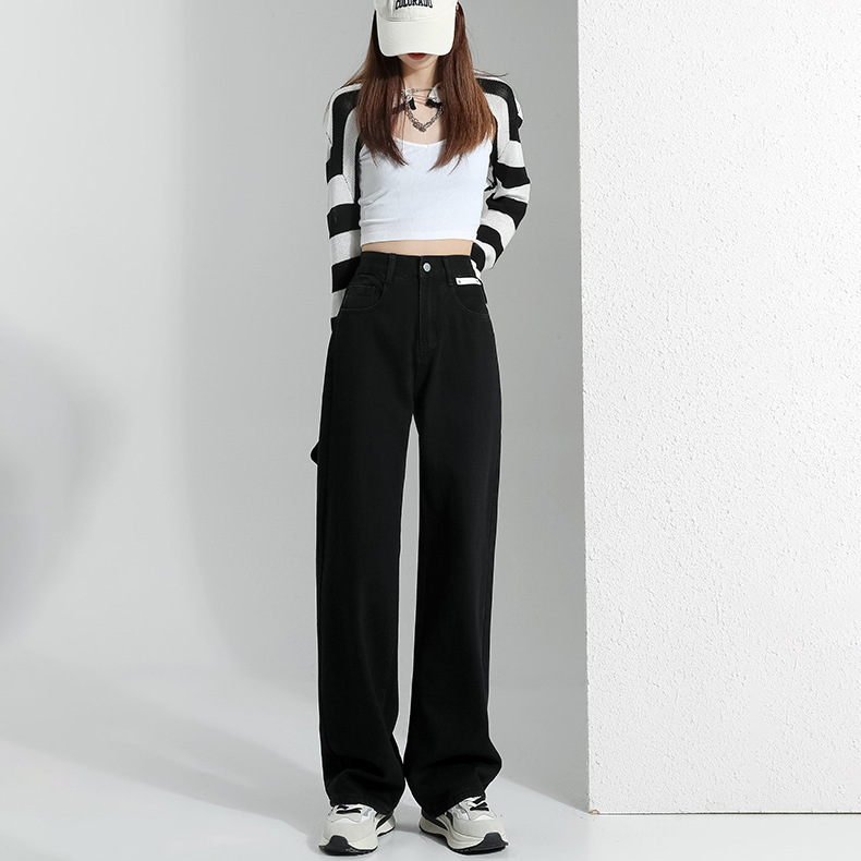 하이 웨이스트 와이드 레그 청바지 여성용 봄과 가을 2023 새로운 슬리밍 모든 매치 루즈한 드레이핑 레트로 스트레이트 팬츠