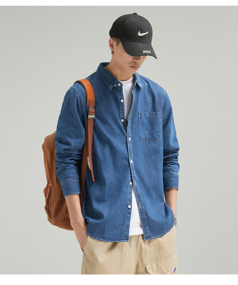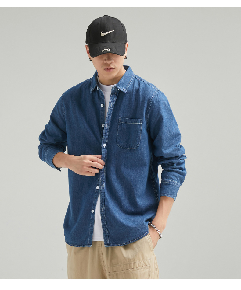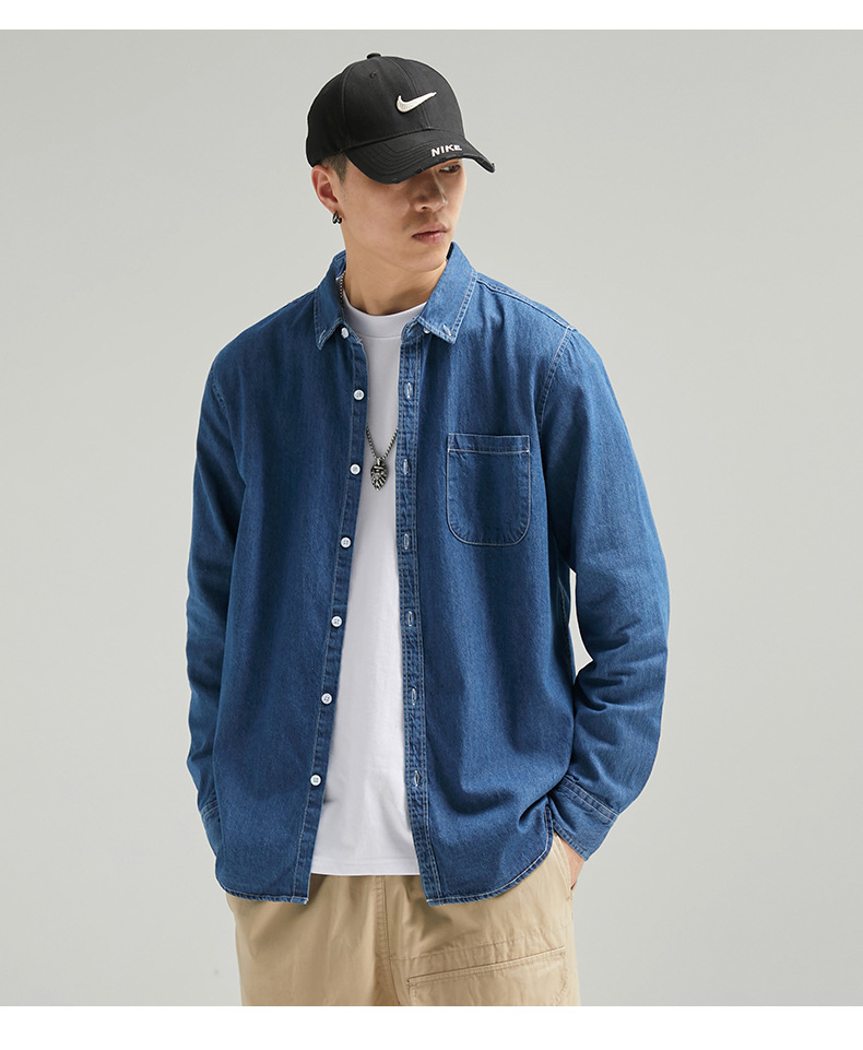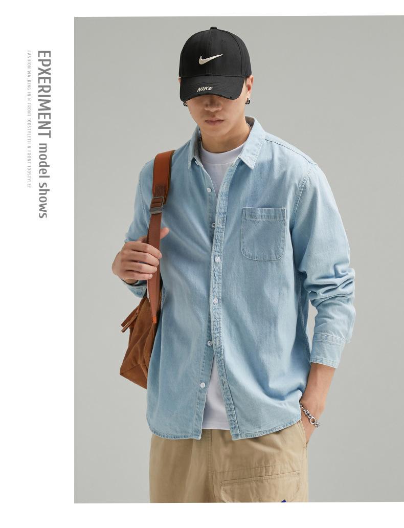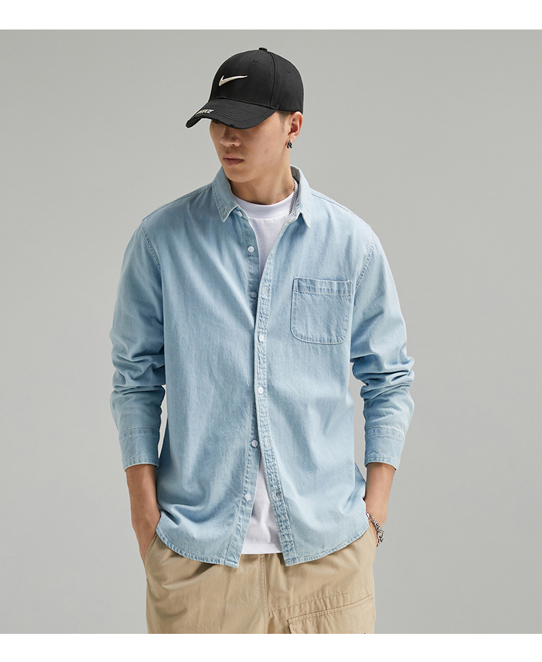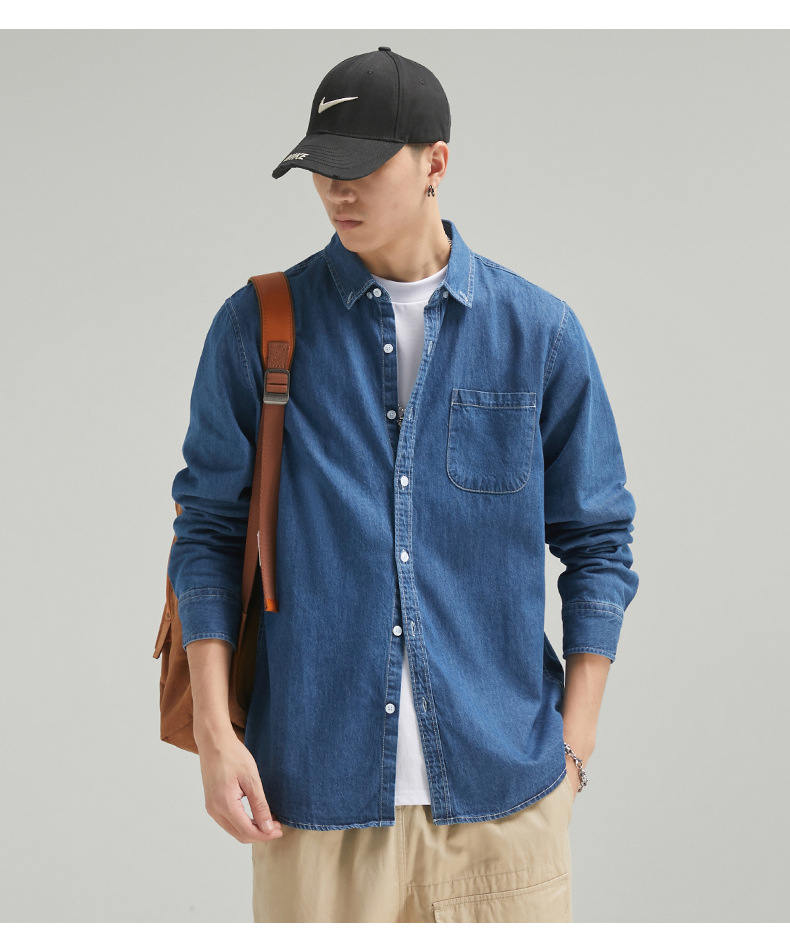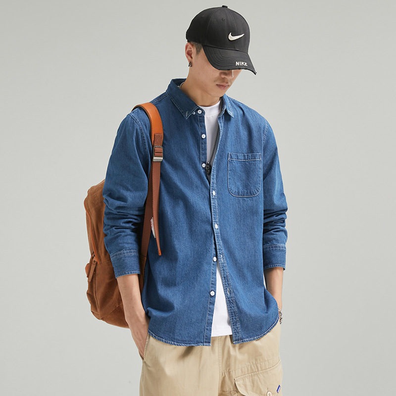 단보니 | 봄 신상 남성 순면 데님 셔츠 긴팔 아메리칸 스타일 워크웨어 레트로 워싱 라이트 럭셔리 셔츠스토어 가기