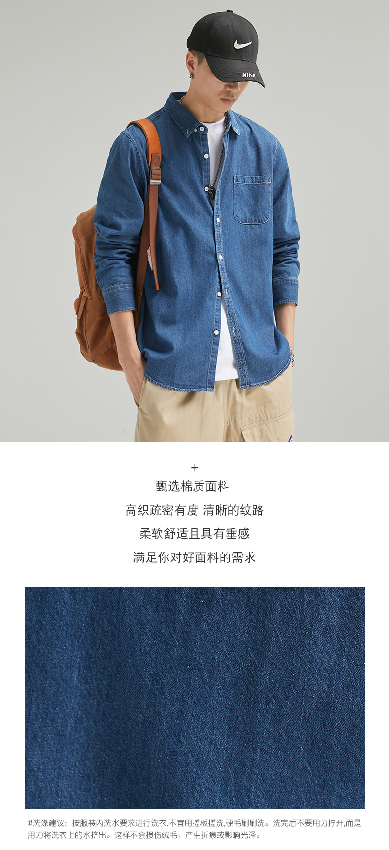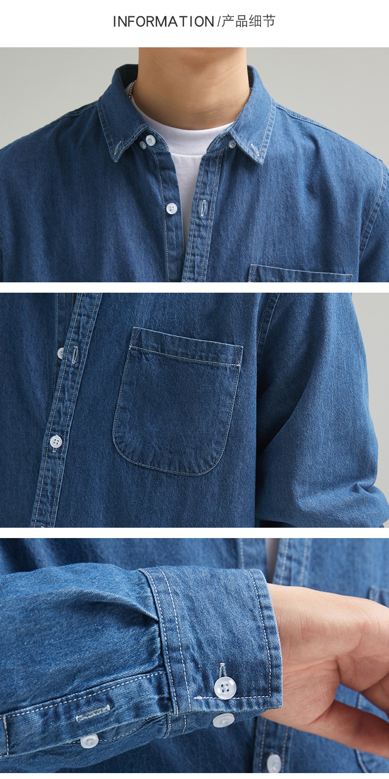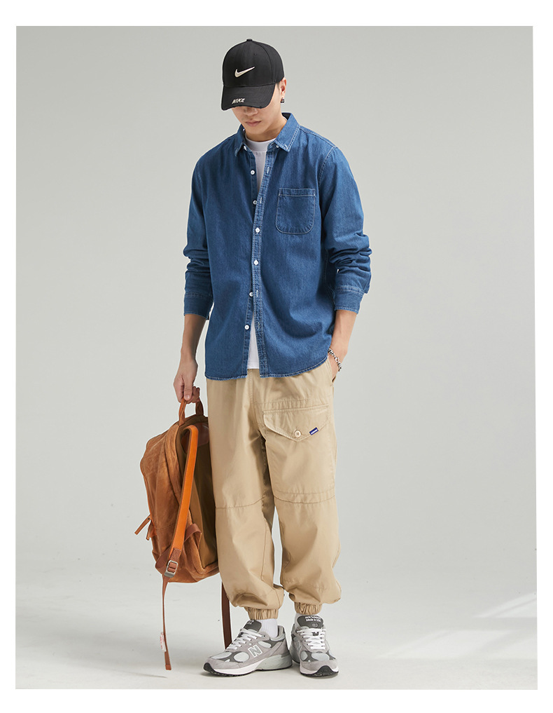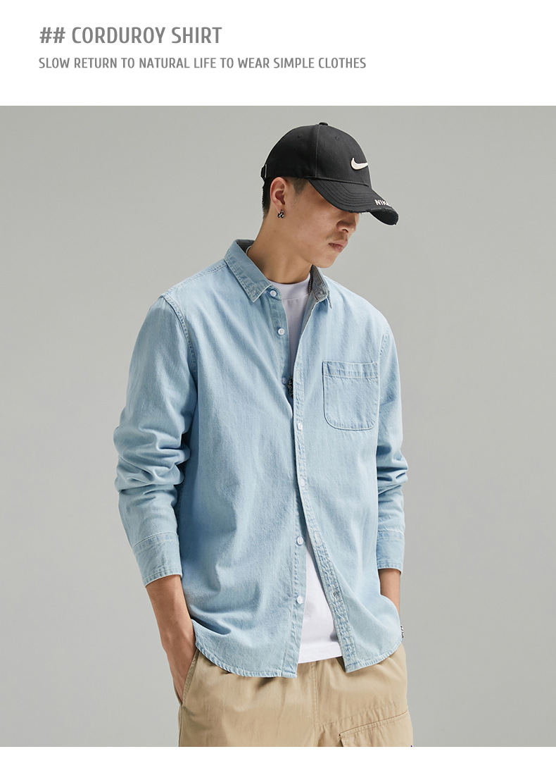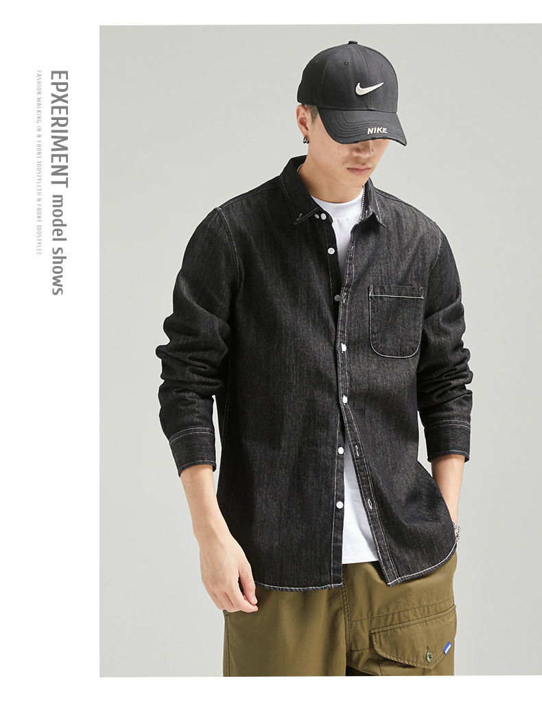 단보니 | 봄 신상 남성 순면 데님 셔츠 긴팔 아메리칸 스타일 워크웨어 레트로 워싱 라이트 럭셔리 셔츠스토어 가기