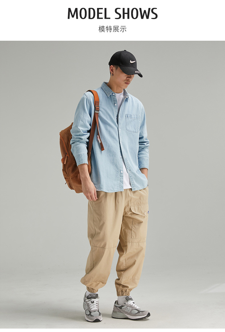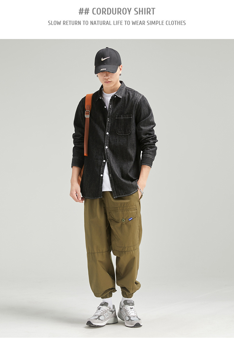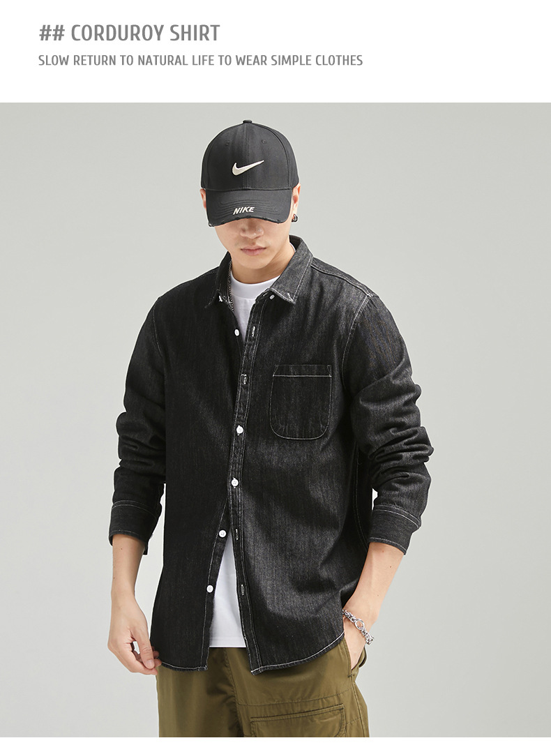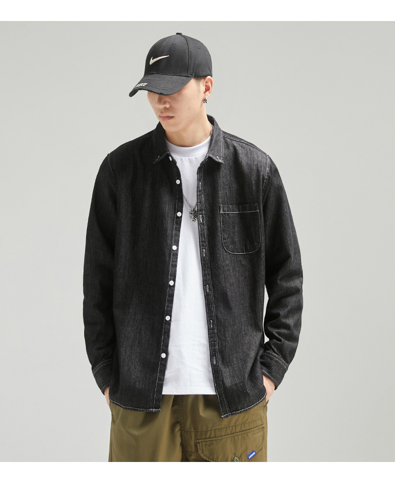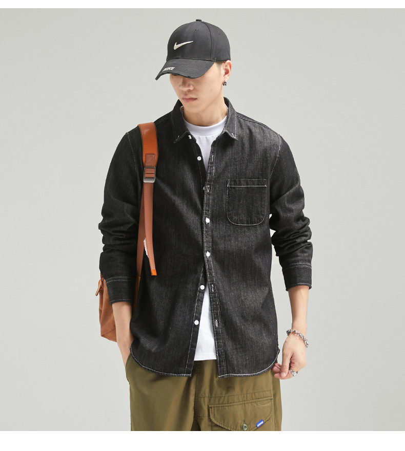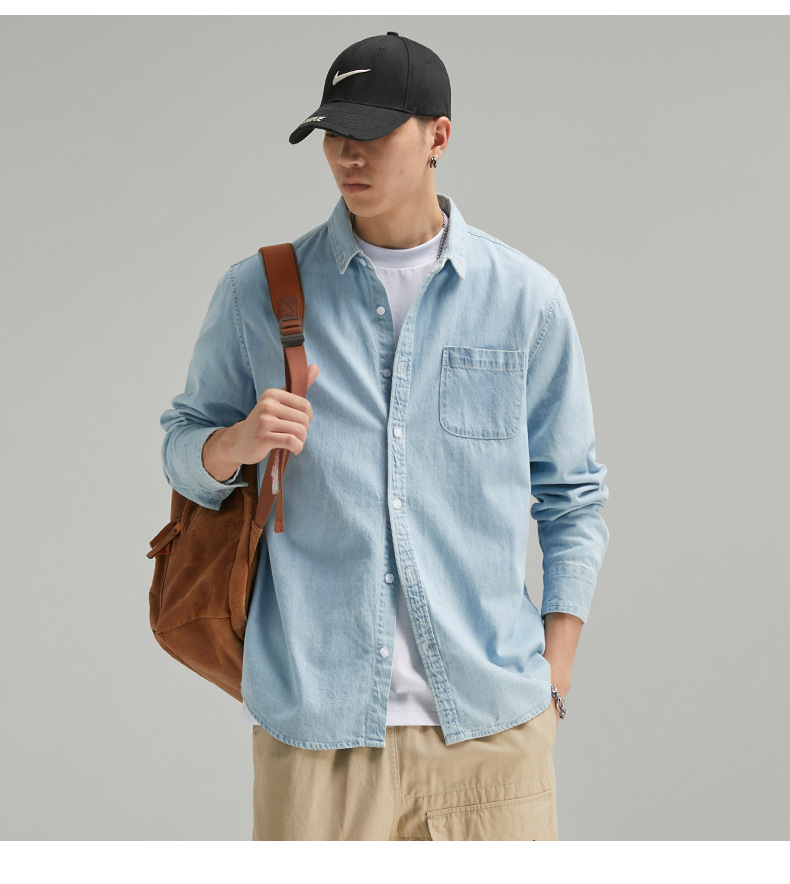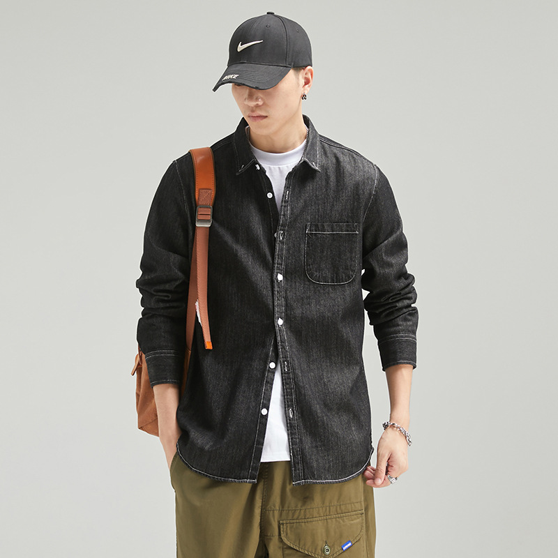 단보니 | 봄 신상 남성 순면 데님 셔츠 긴팔 아메리칸 스타일 워크웨어 레트로 워싱 라이트 럭셔리 셔츠
