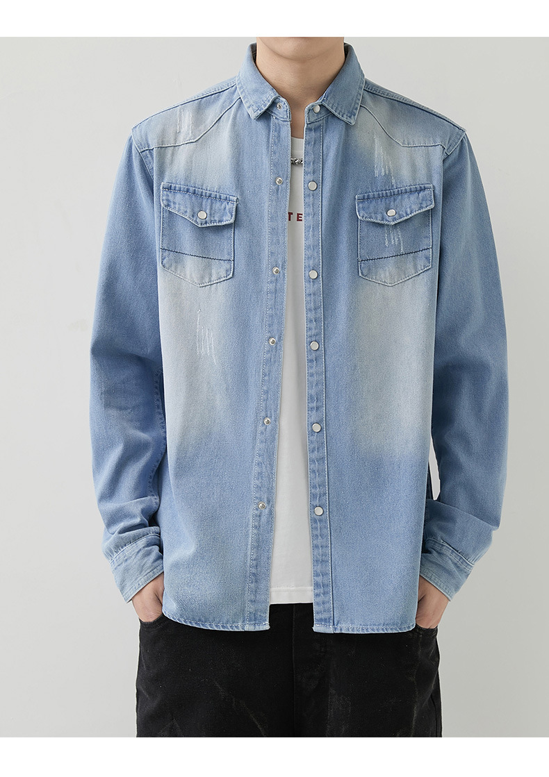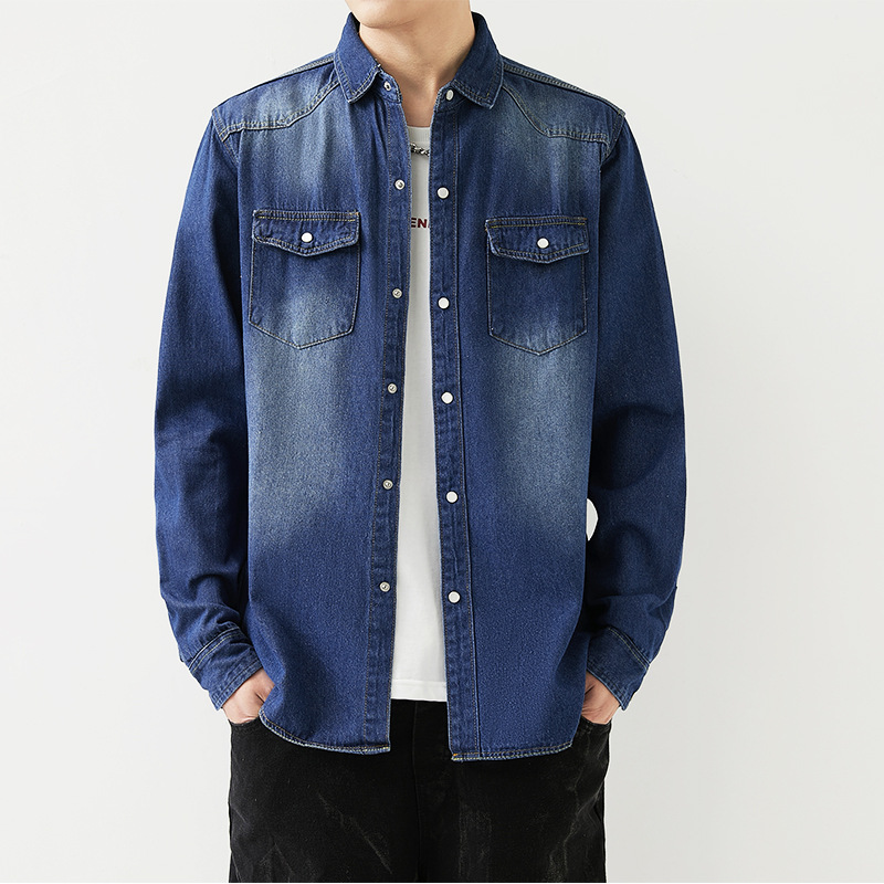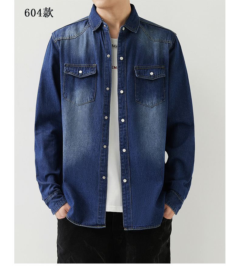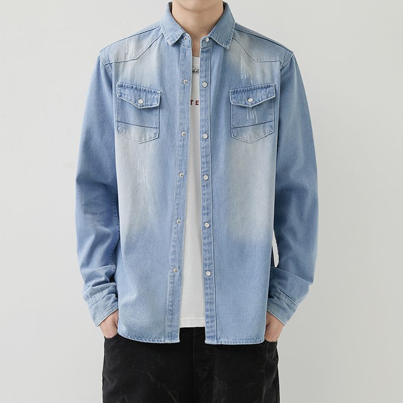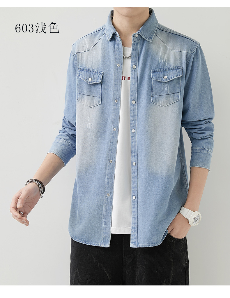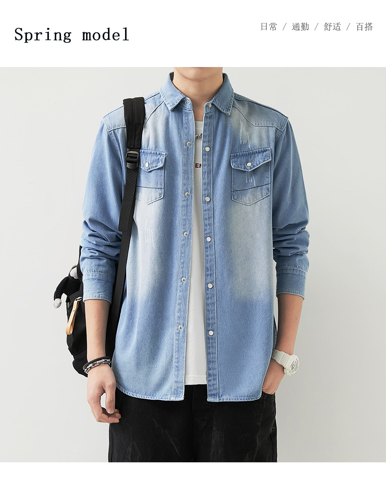 대외 무역 씻어 심플 조커 긴 소매 데님 셔츠 2023 봄과 가을 청소년 한국 슬림 핏 셔츠 남성 코트스토어 가기