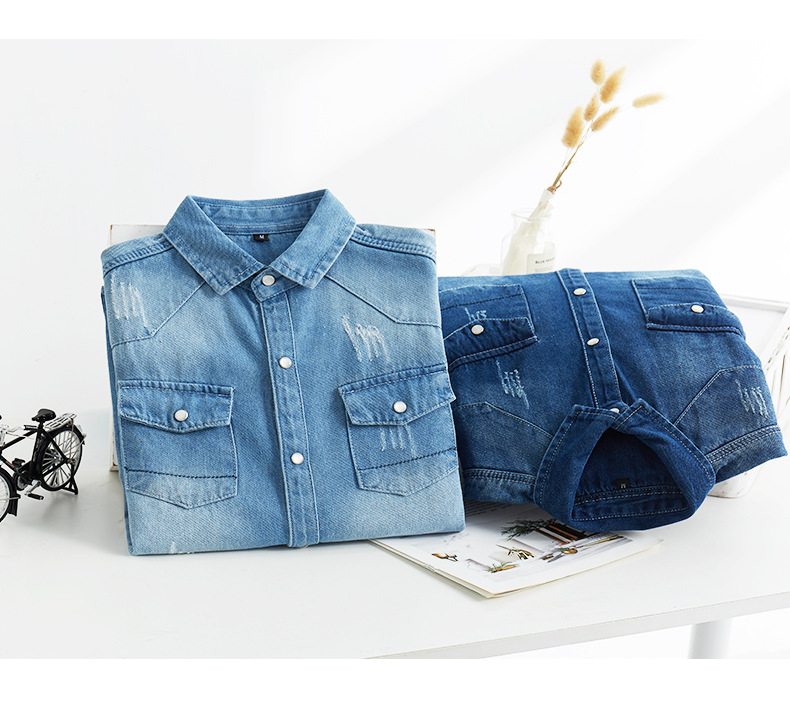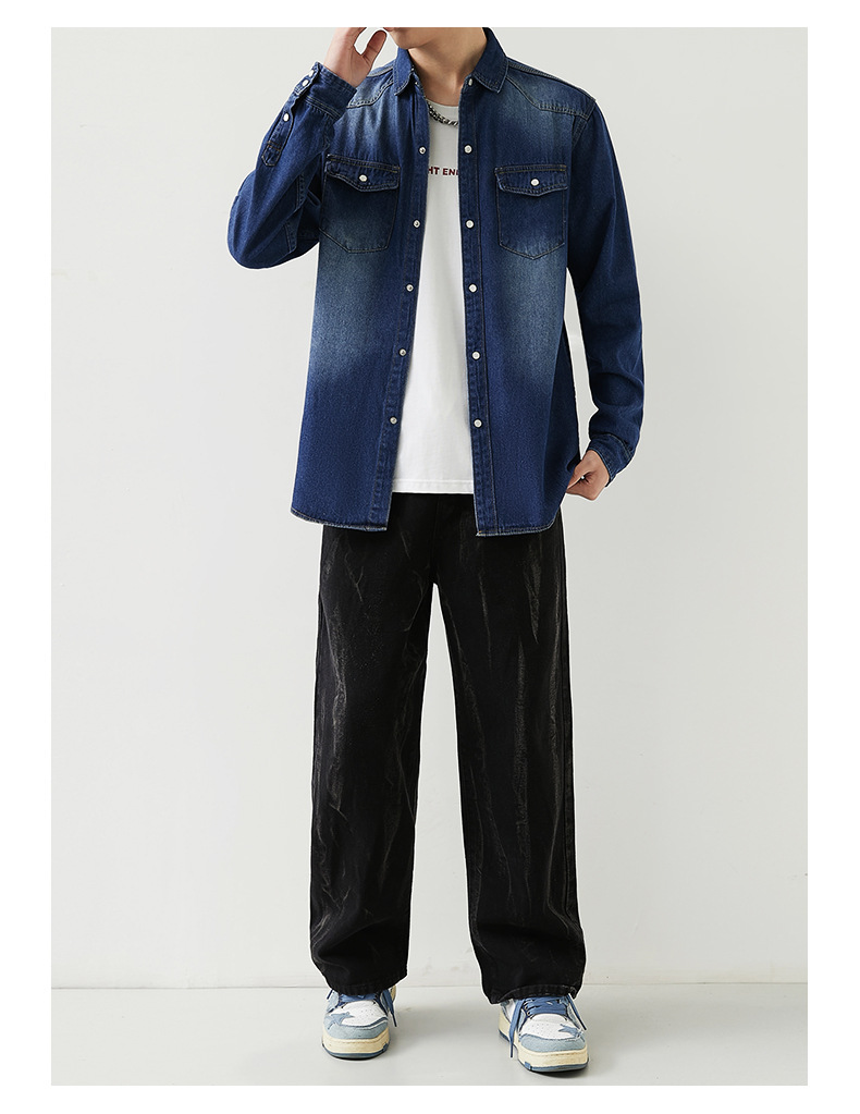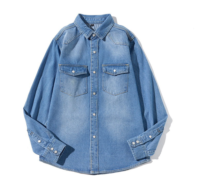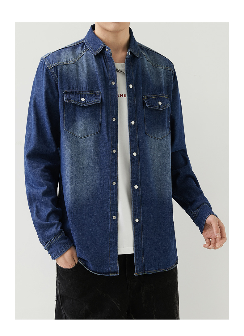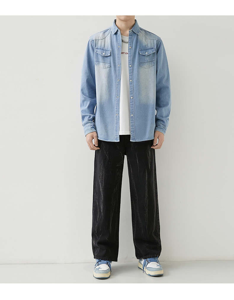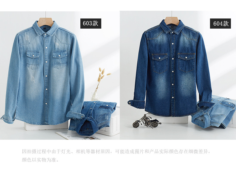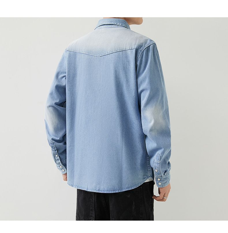 대외 무역 씻어 심플 조커 긴 소매 데님 셔츠 2023 봄과 가을 청소년 한국 슬림 핏 셔츠 남성 코트스토어 가기