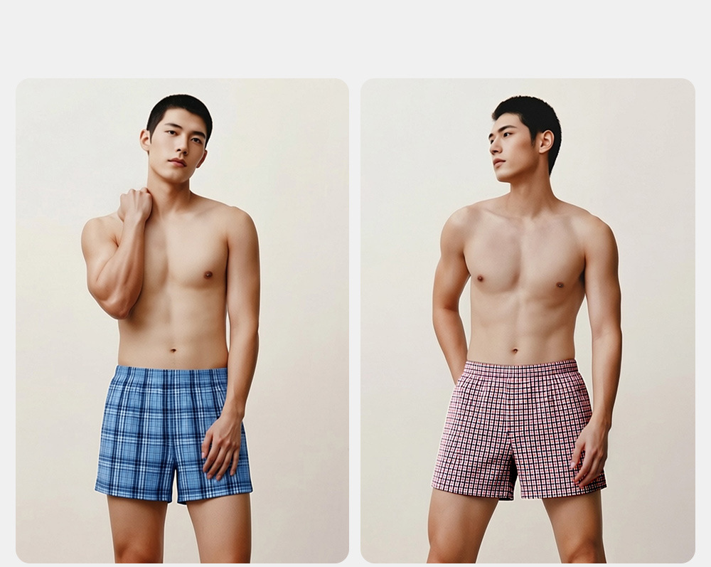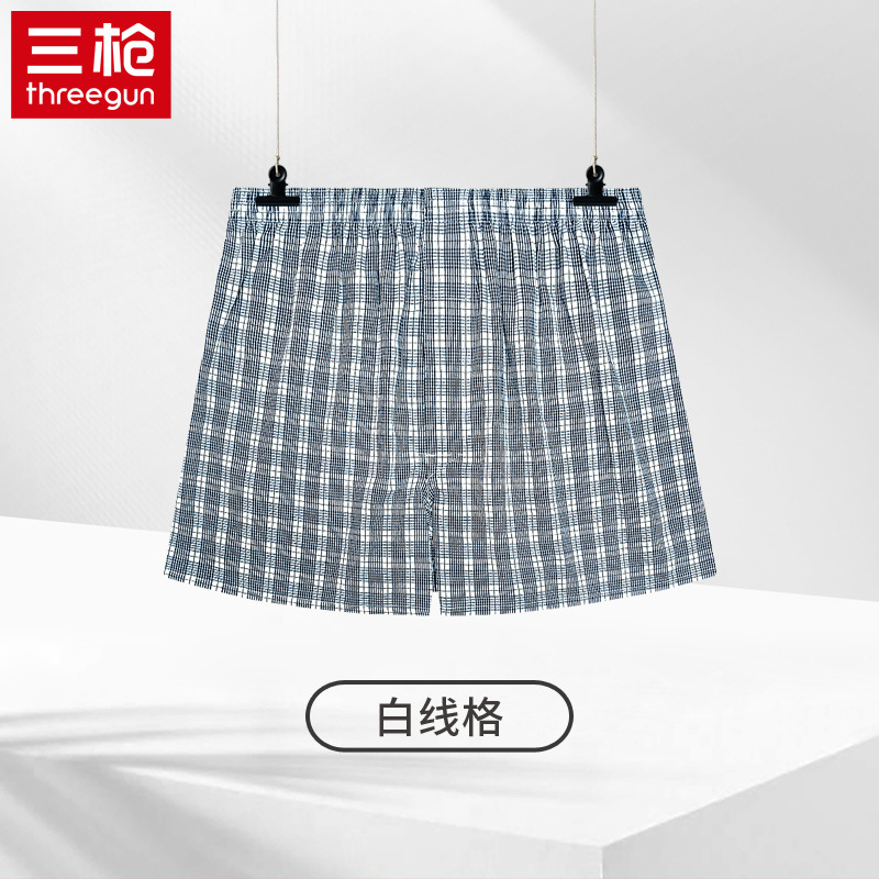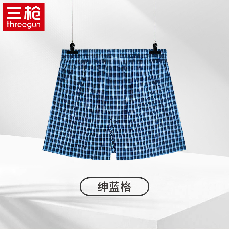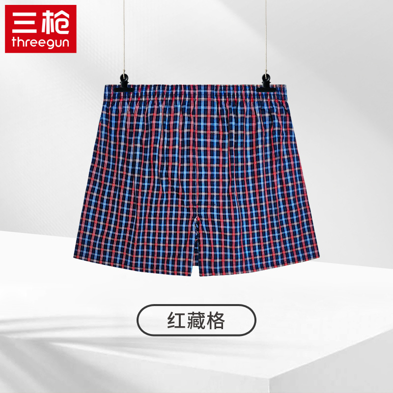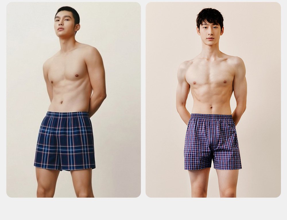 쓰리 샷 남성용 화살표 바지 면 편안한 통기성 느슨한 격자 무늬 원사 염색 남성용 복서 바지스토어 가기