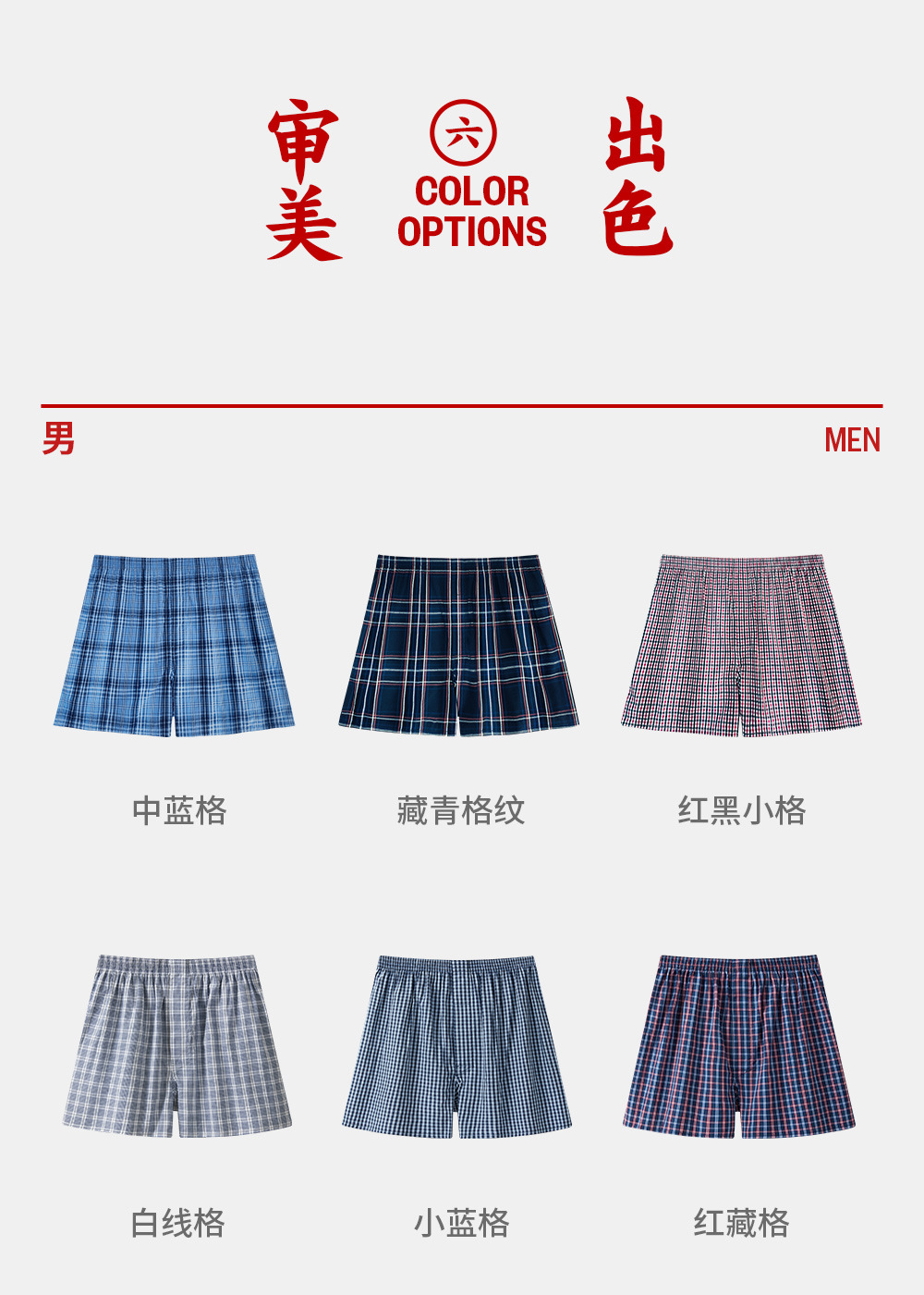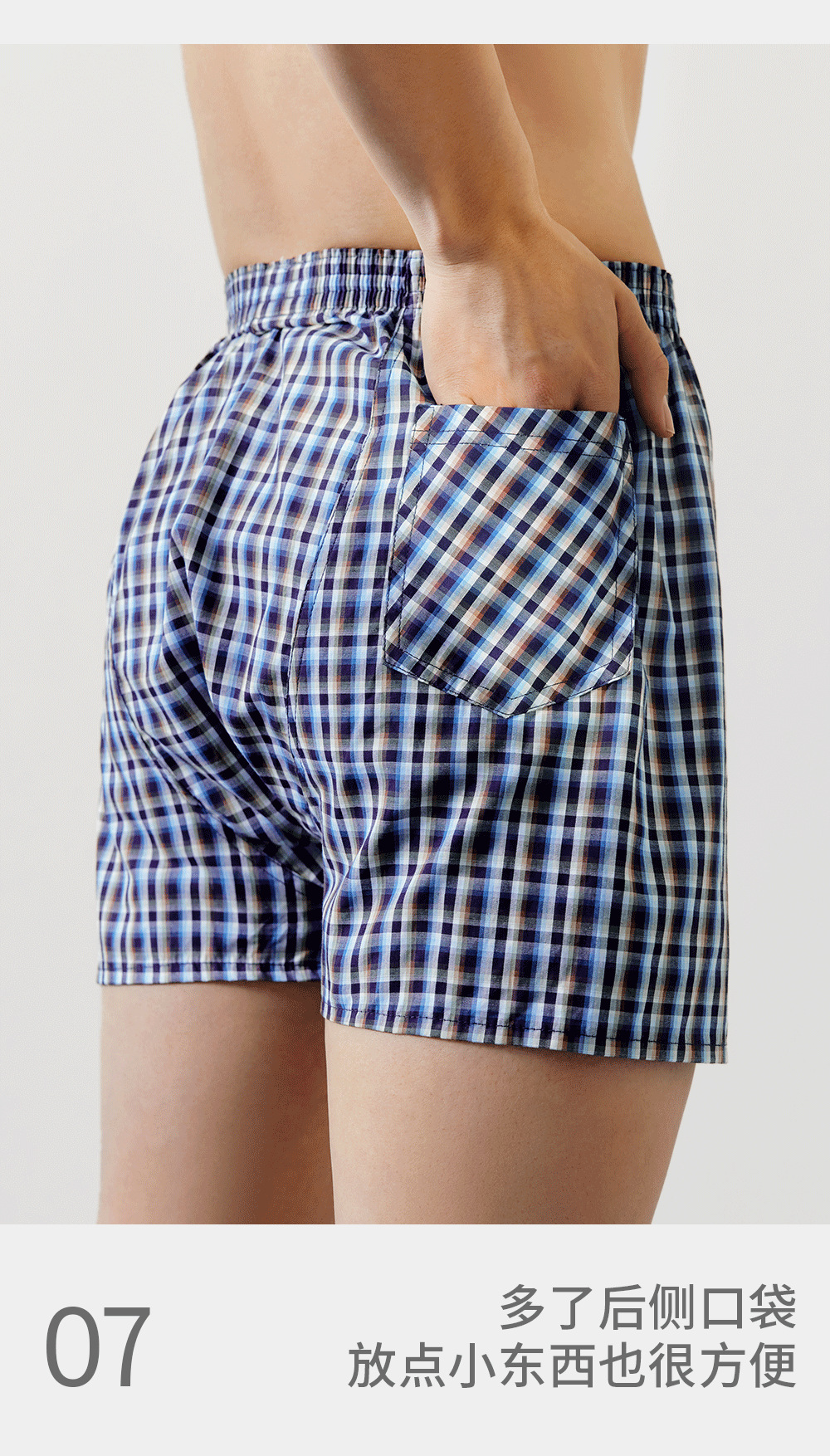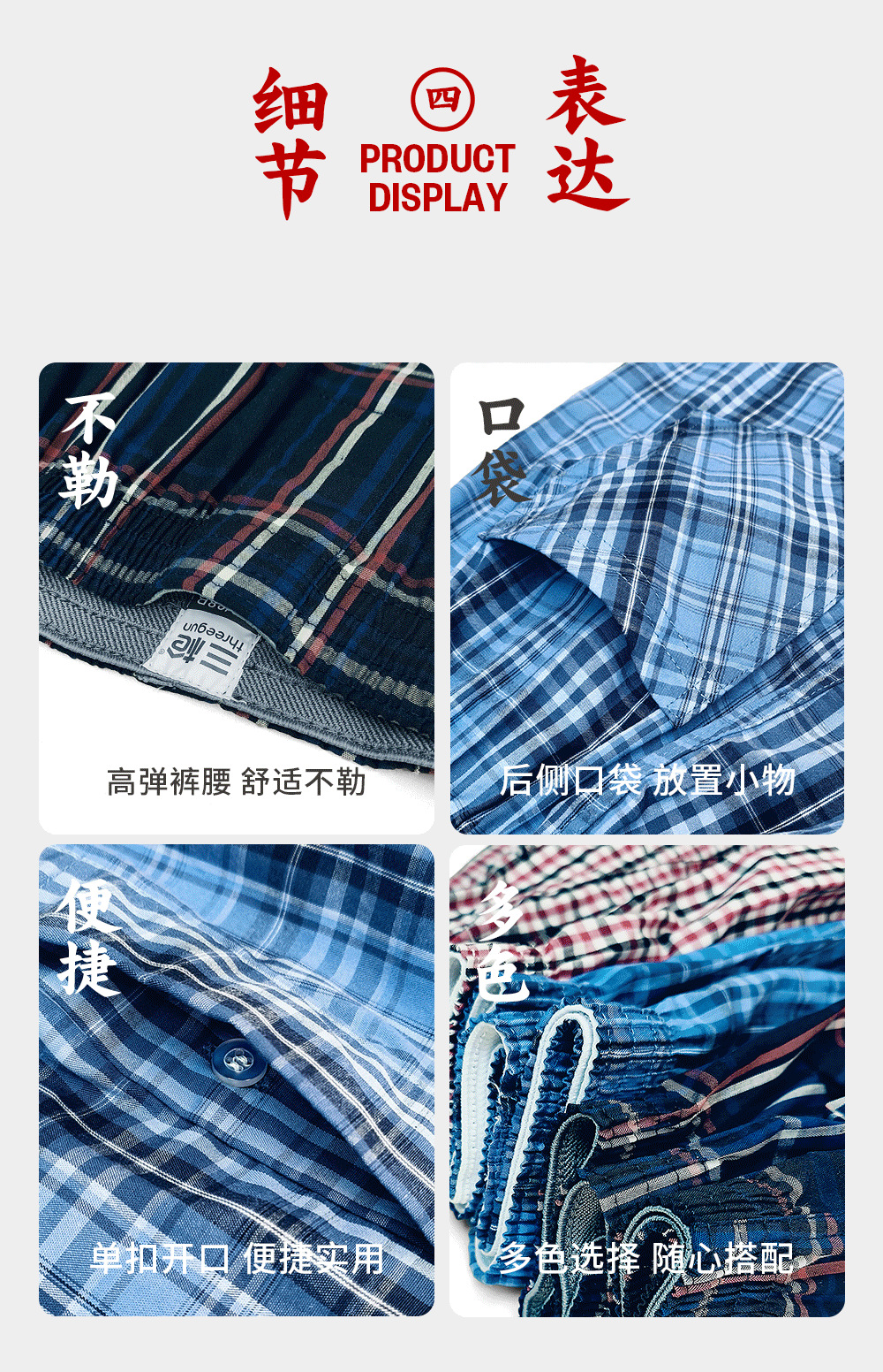 쓰리 샷 남성용 화살표 바지 면 편안한 통기성 느슨한 격자 무늬 원사 염색 남성용 복서 바지스토어 가기