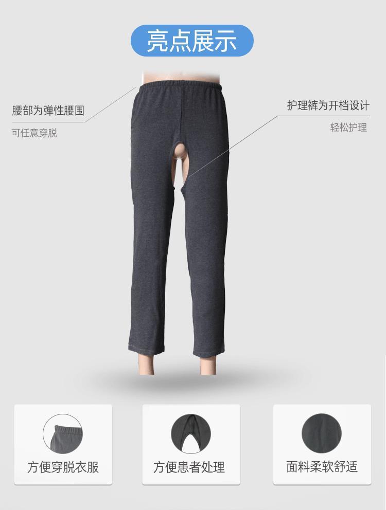 가을과 겨울 마비 노인 오픈 가랑이 바지 침대 성인 가을 바지 노인 요실금 관리 바지 남성 및 여성 환자를위한 특수 바지
