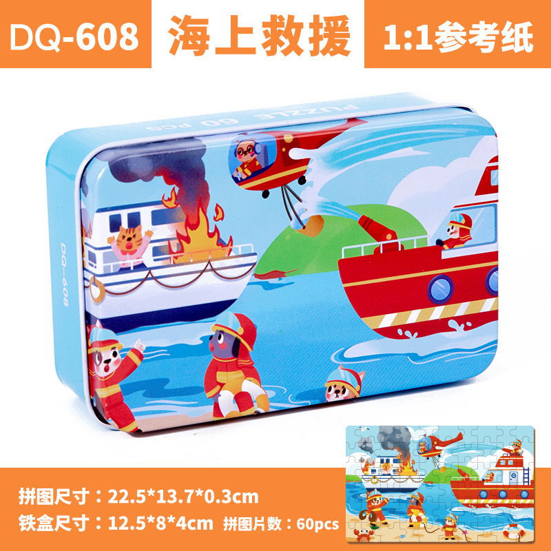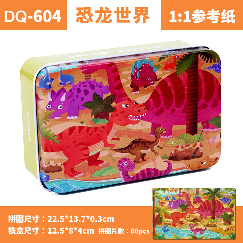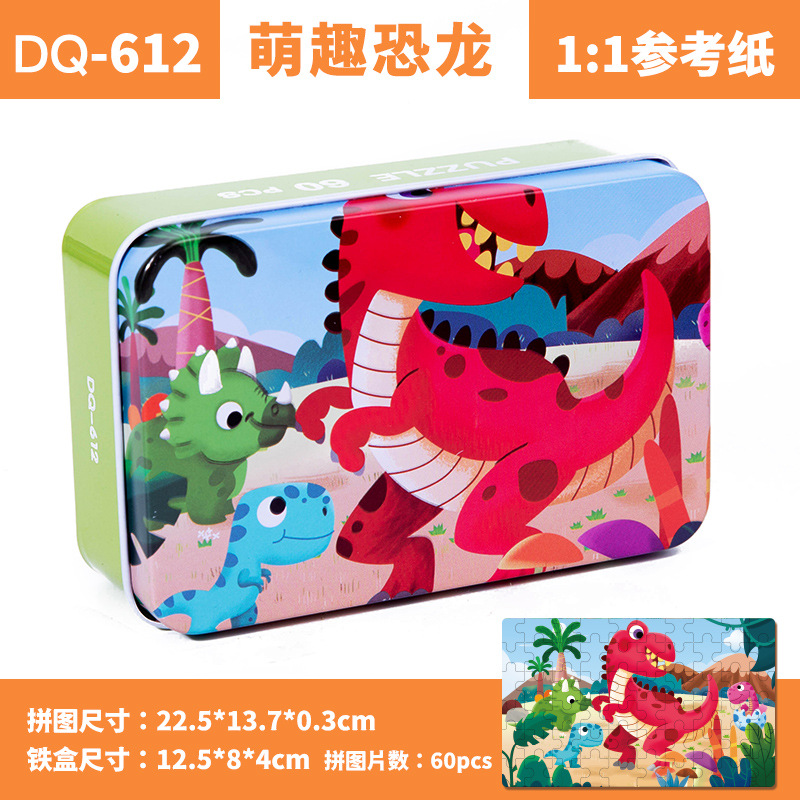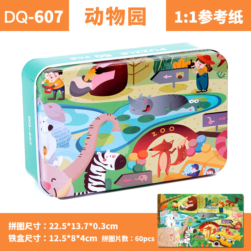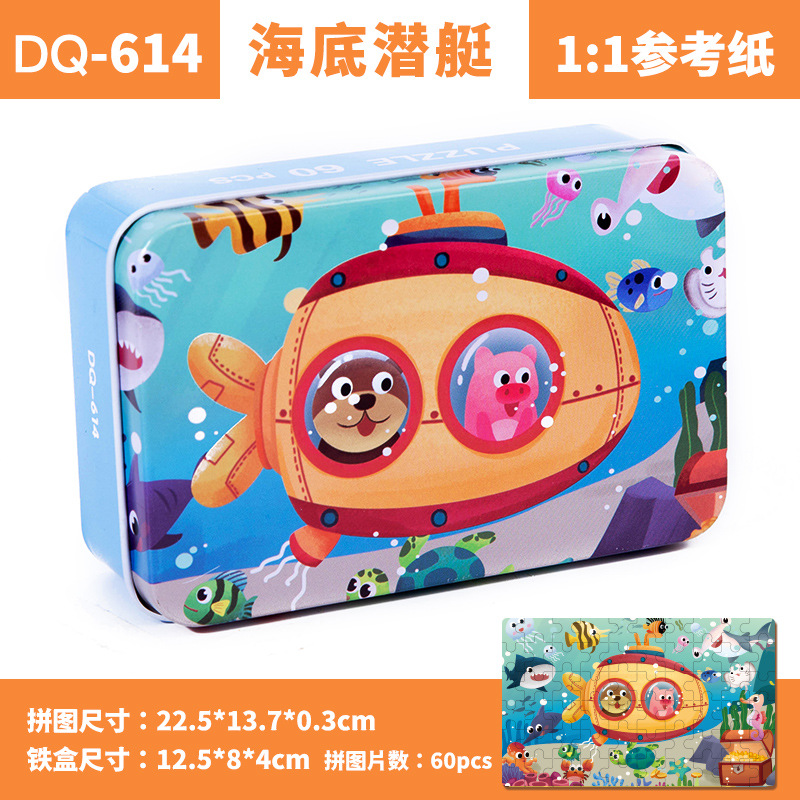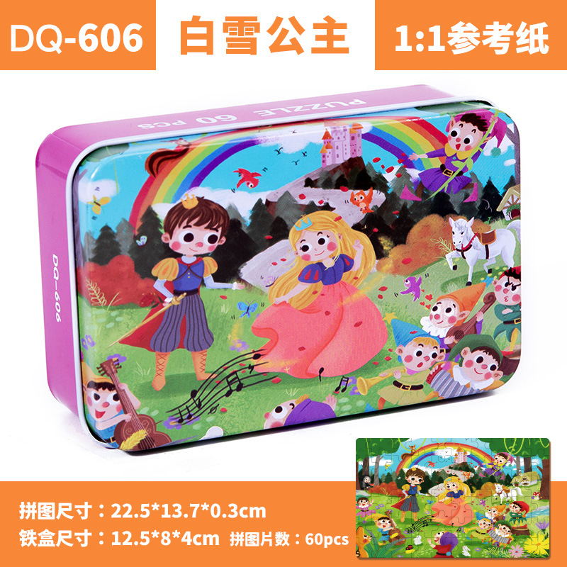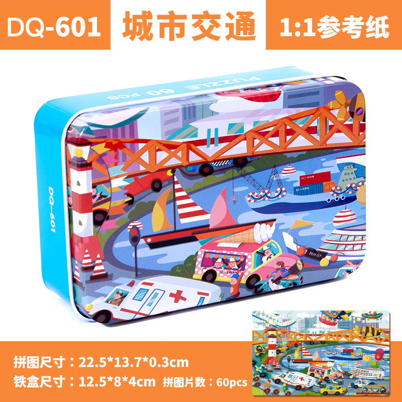 철제 상자 나무 퍼즐 애니메이션 만화 비행기 퍼즐 퍼즐 어린이 조기 교육 교육 완구 국경 간 도매 60 장
