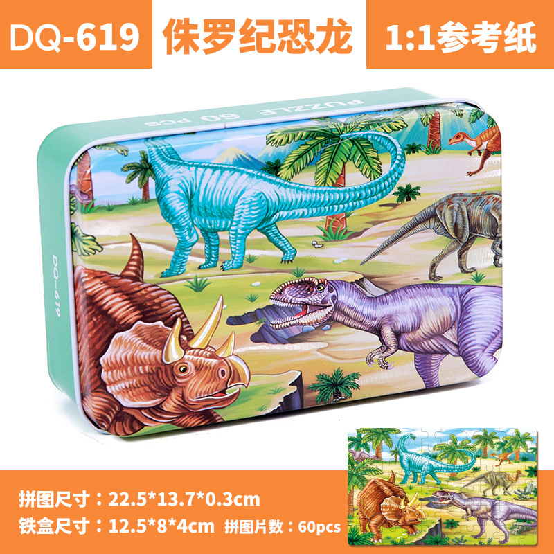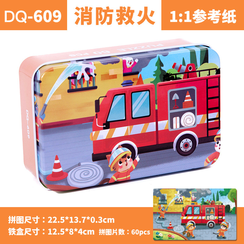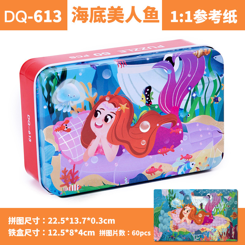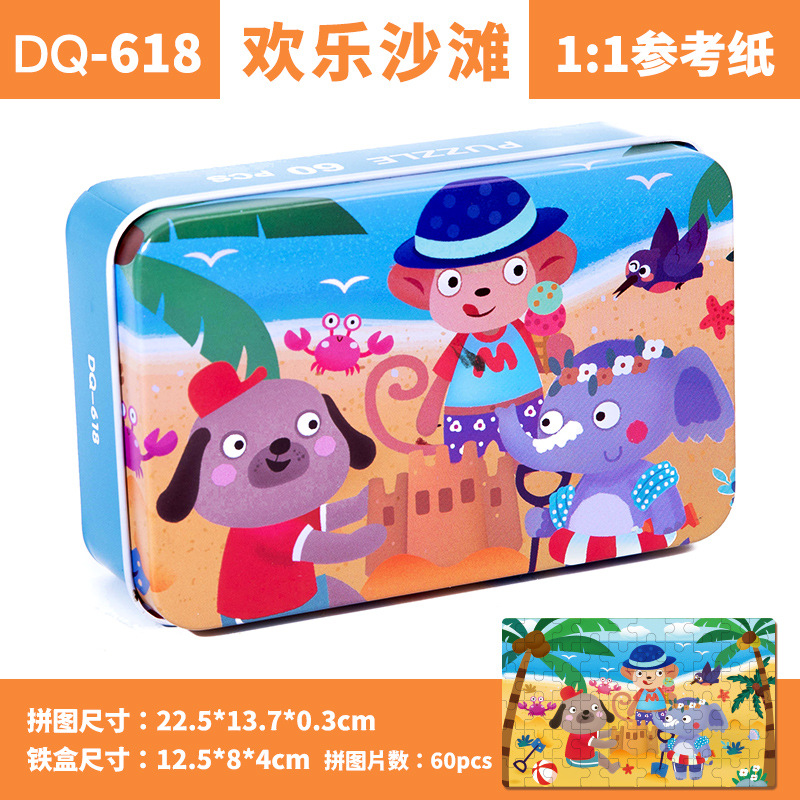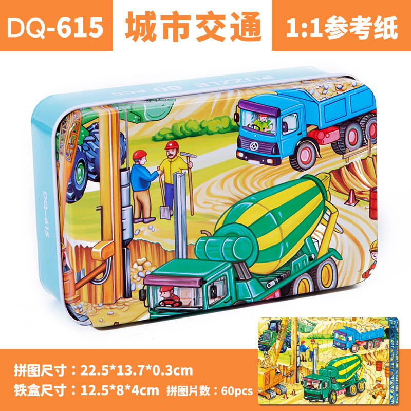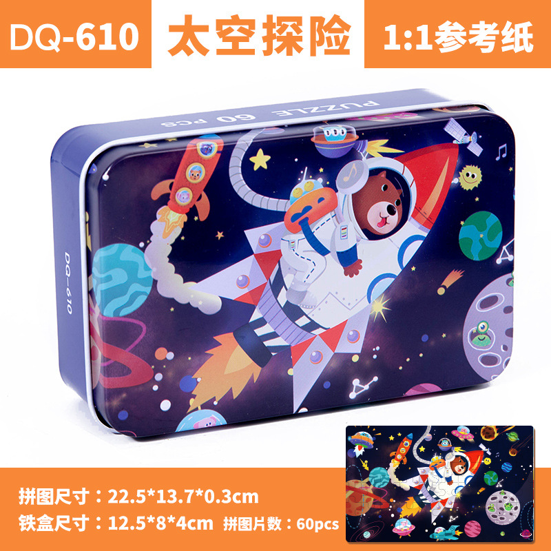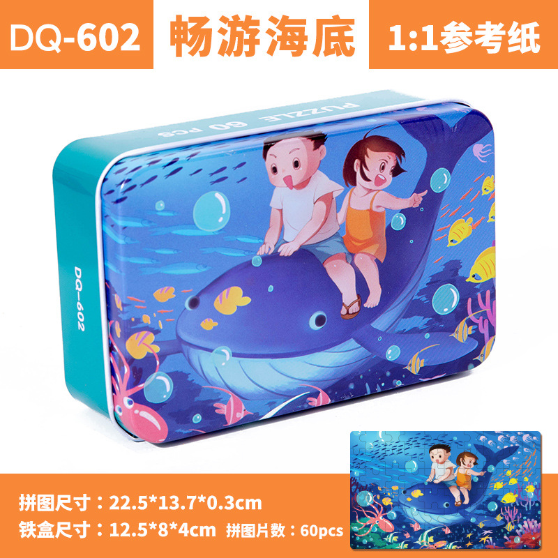 철제 상자 나무 퍼즐 애니메이션 만화 비행기 퍼즐 퍼즐 어린이 조기 교육 교육 완구 국경 간 도매 60 장
