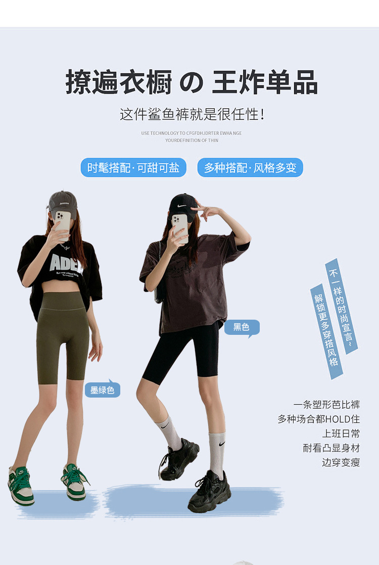 여성용 5부 샤크팬츠, 외출복으로도 착용 가능, 노출방지 레깅스 반바지, 여름용 뱃살 보정, 타이트핏 요가 사이클링 팬츠, 고탄력 슬리밍 효과스토어 가기