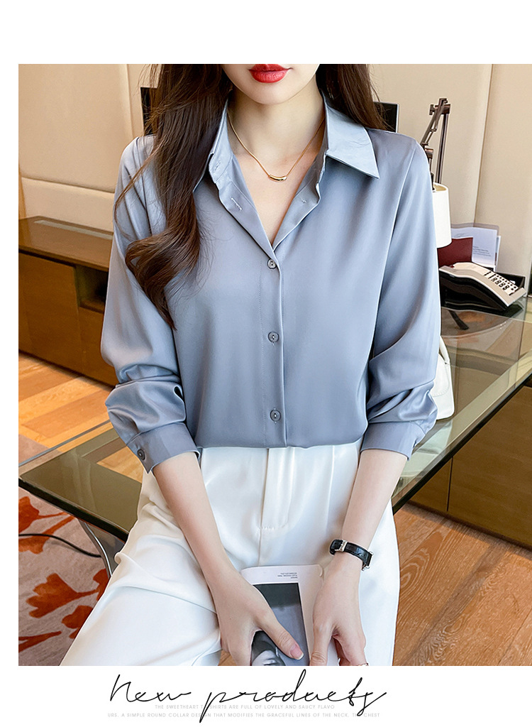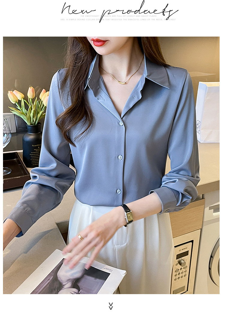 런닝 볼륨 17 컬러 5 사이즈 스팟 하이 센스가 아닌 주름 방지 셔츠 여성의 단색 아세트산 셔츠 봄과 가을스토어 가기
