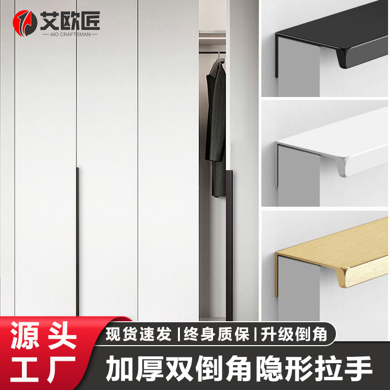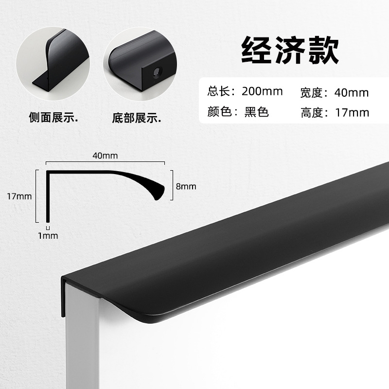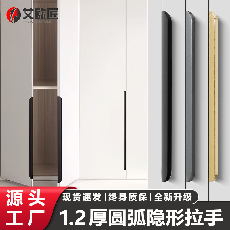 보이지 않는 옷장 손잡이 현대 간단한 검은 내각 문 손잡이 알루미늄 합금 서랍 둥근 측면 장착 캐비닛 문 손잡이