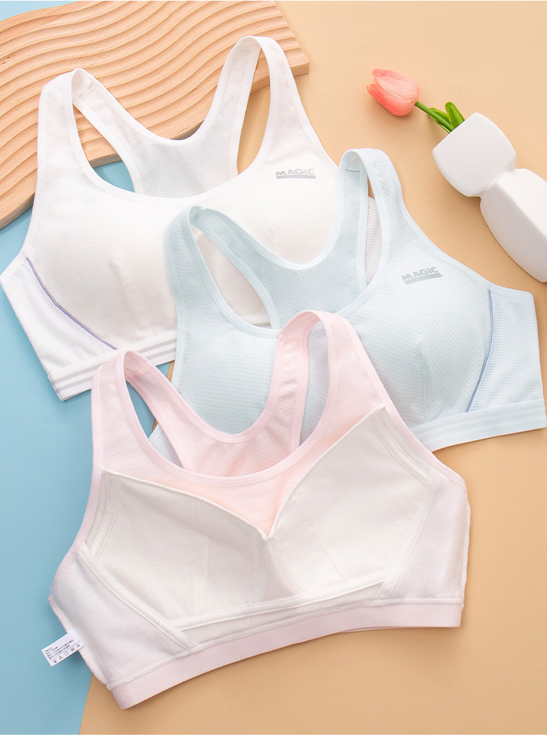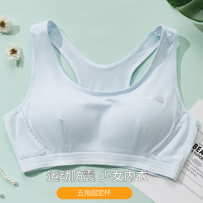 여아 브라 스포츠 속옷 여성 중학생 고등학생 개발 기간 충격 방지 여아 작은 조끼 3 단계