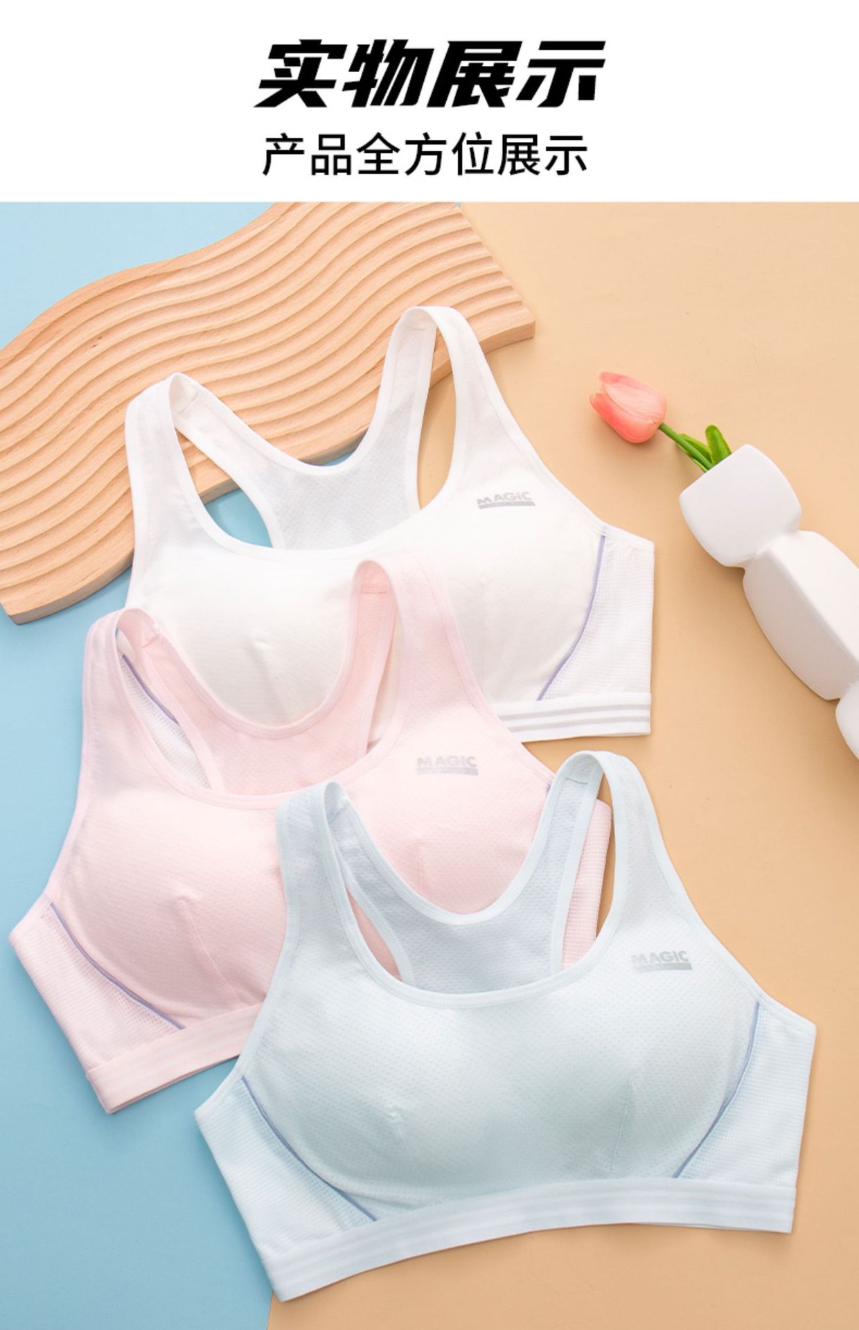여아 브라 스포츠 속옷 여성 중학생 고등학생 개발 기간 충격 방지 여아 작은 조끼 3 단계스토어 가기
