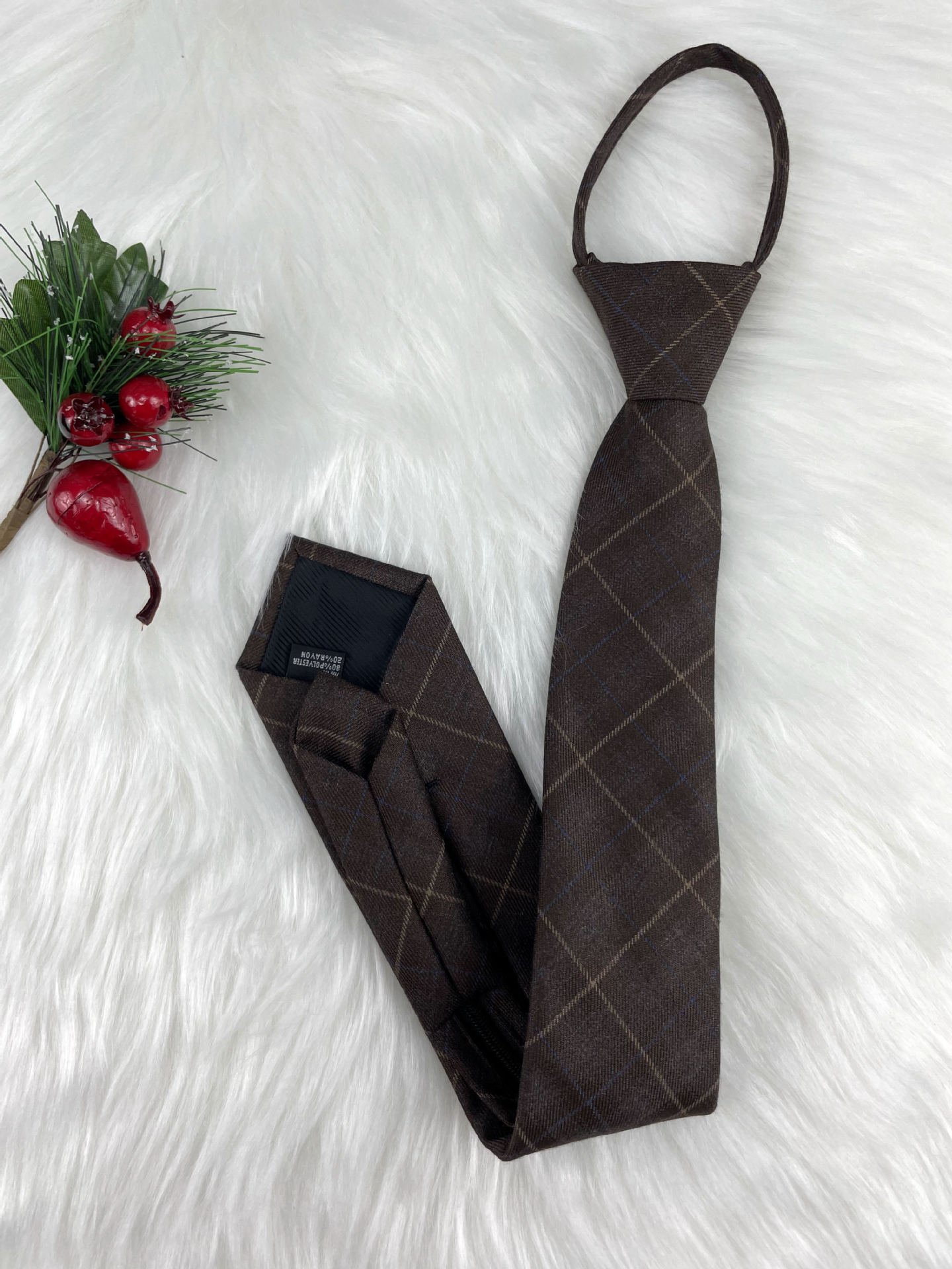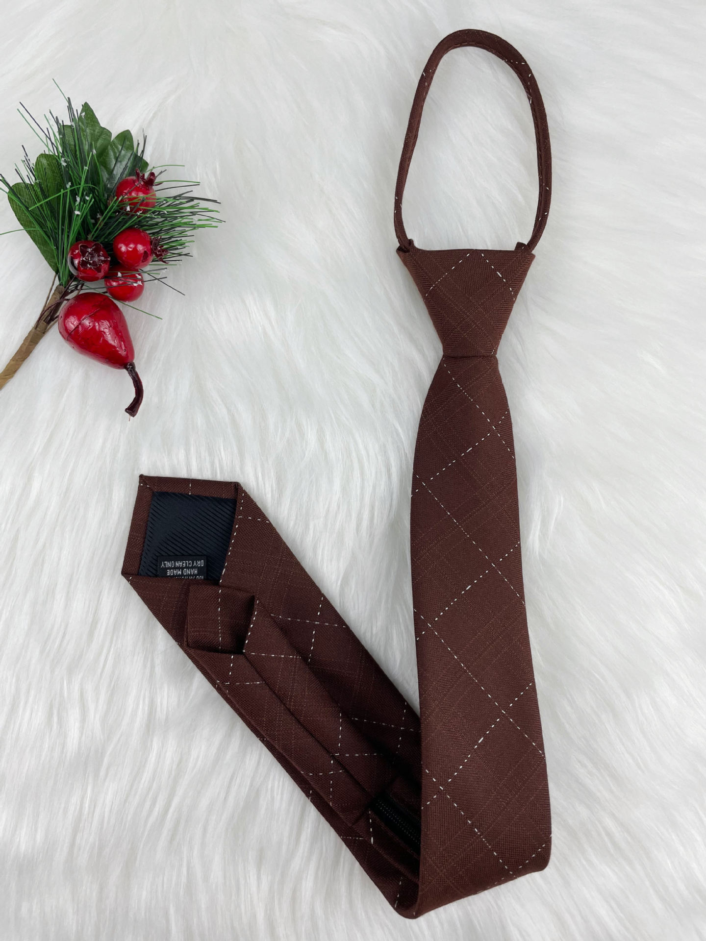 • 다크 다크 브라운 격자 TR 면 지퍼 넥타이 * 48cm