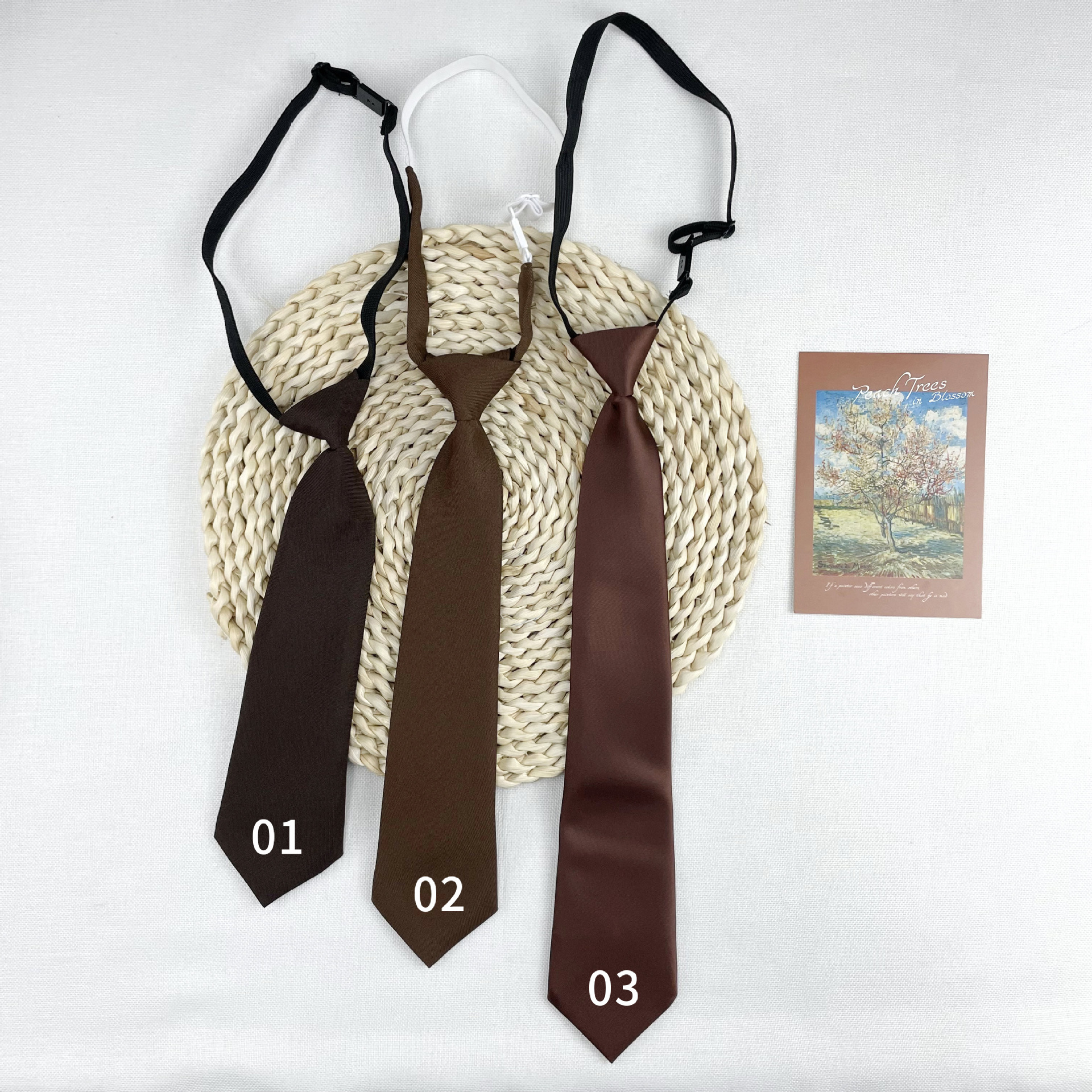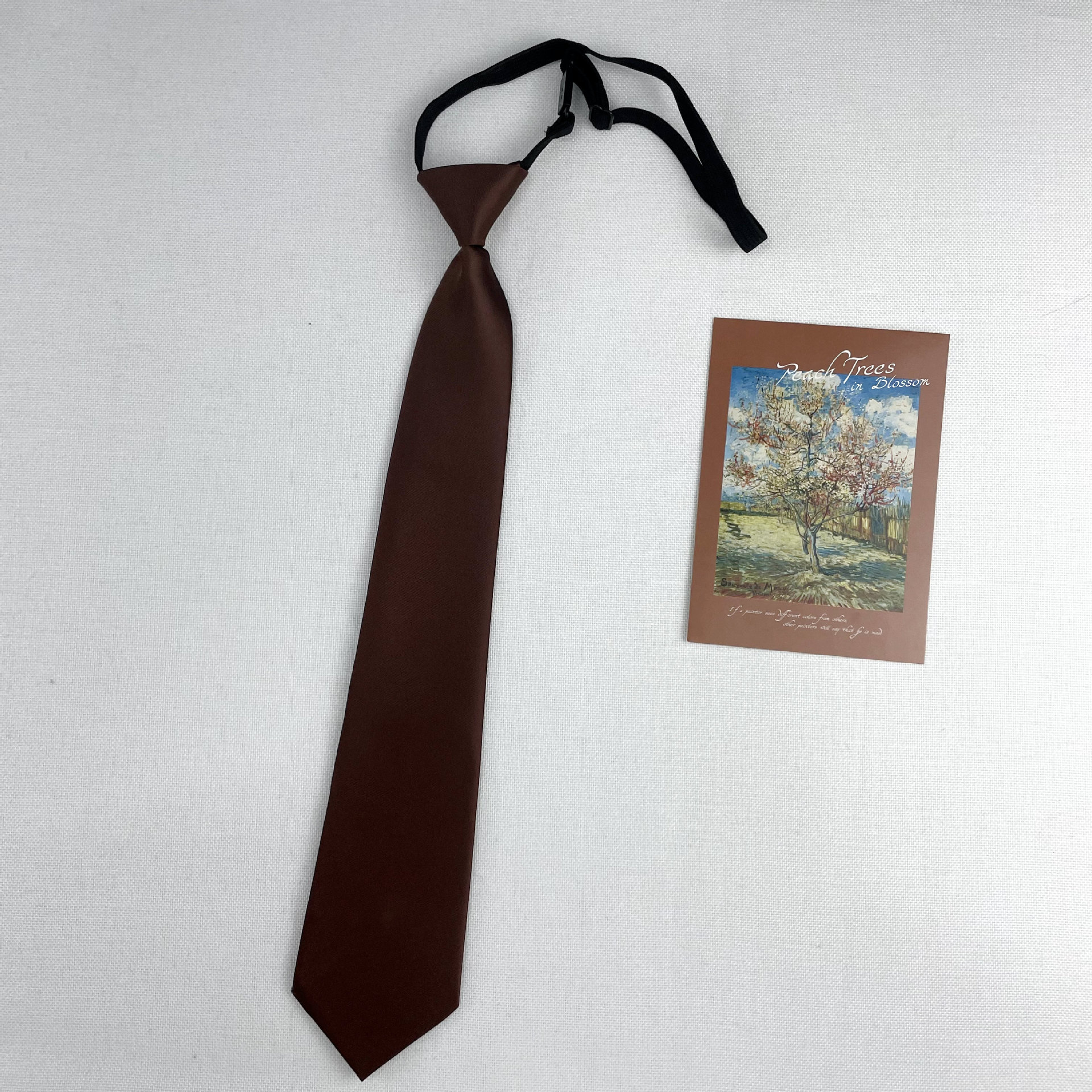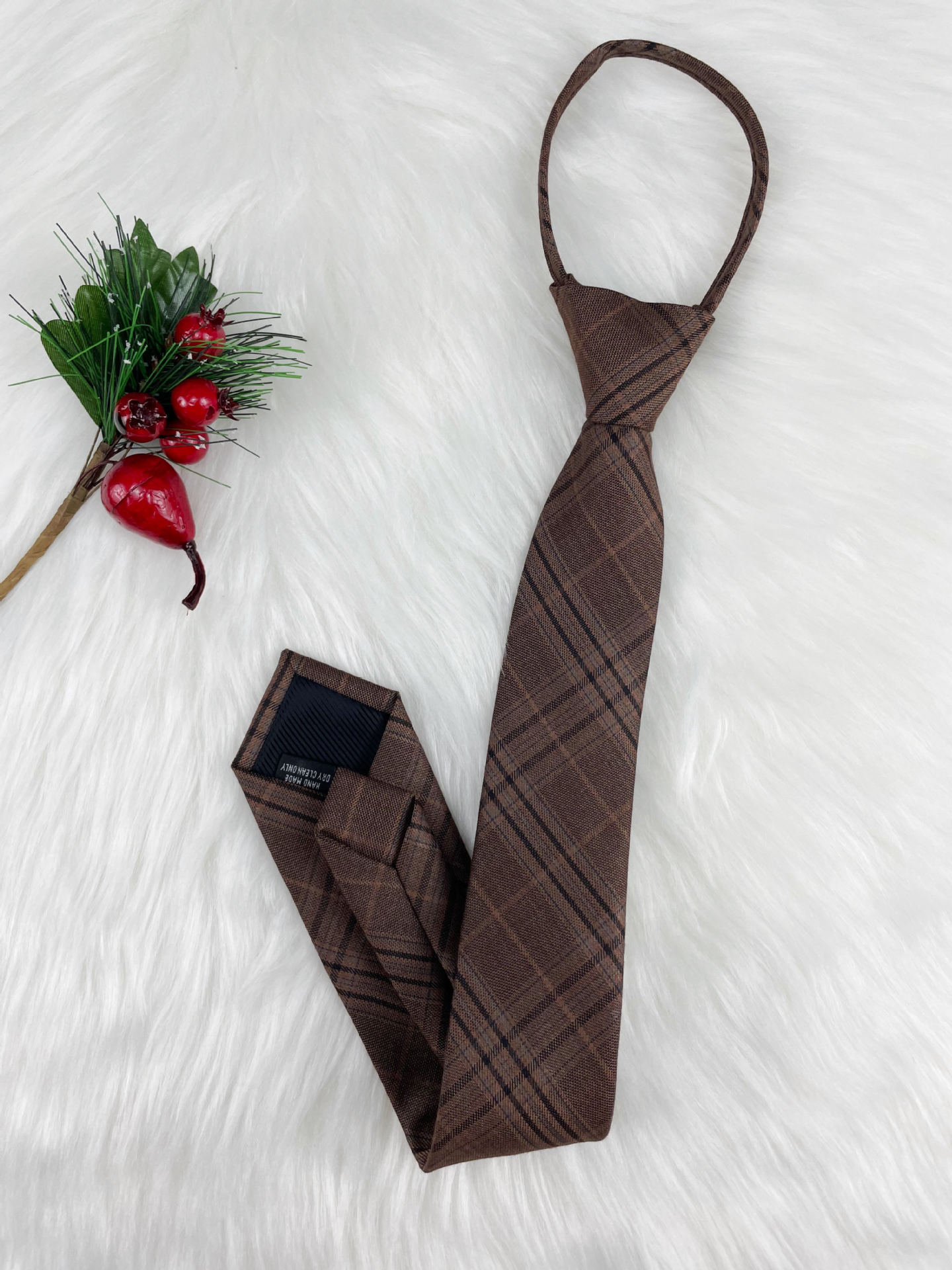 • 쌀 다크 브라운 격자 TR 면 지퍼 넥타이 * 48cm