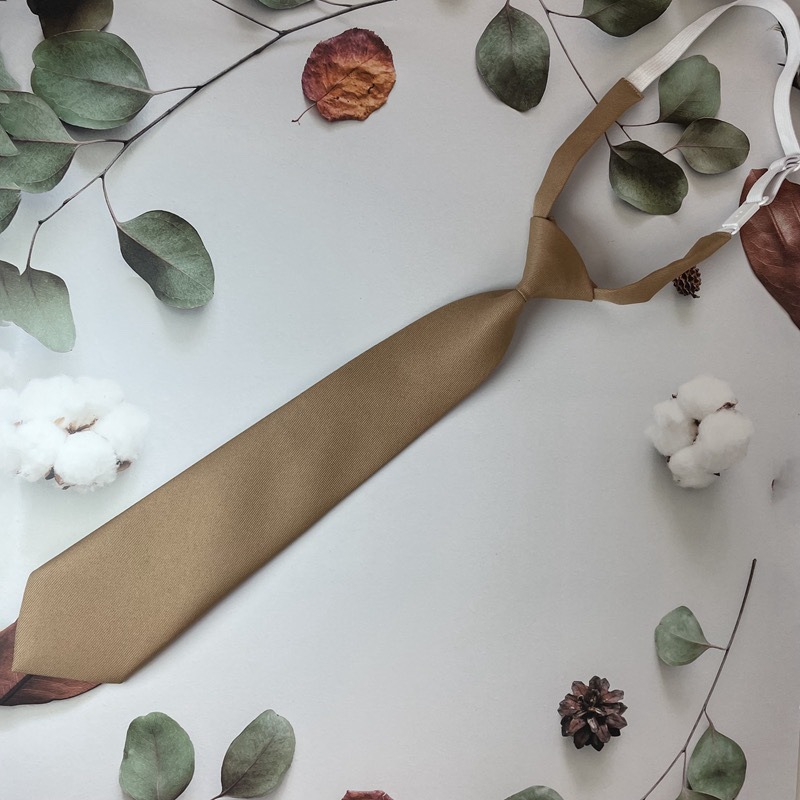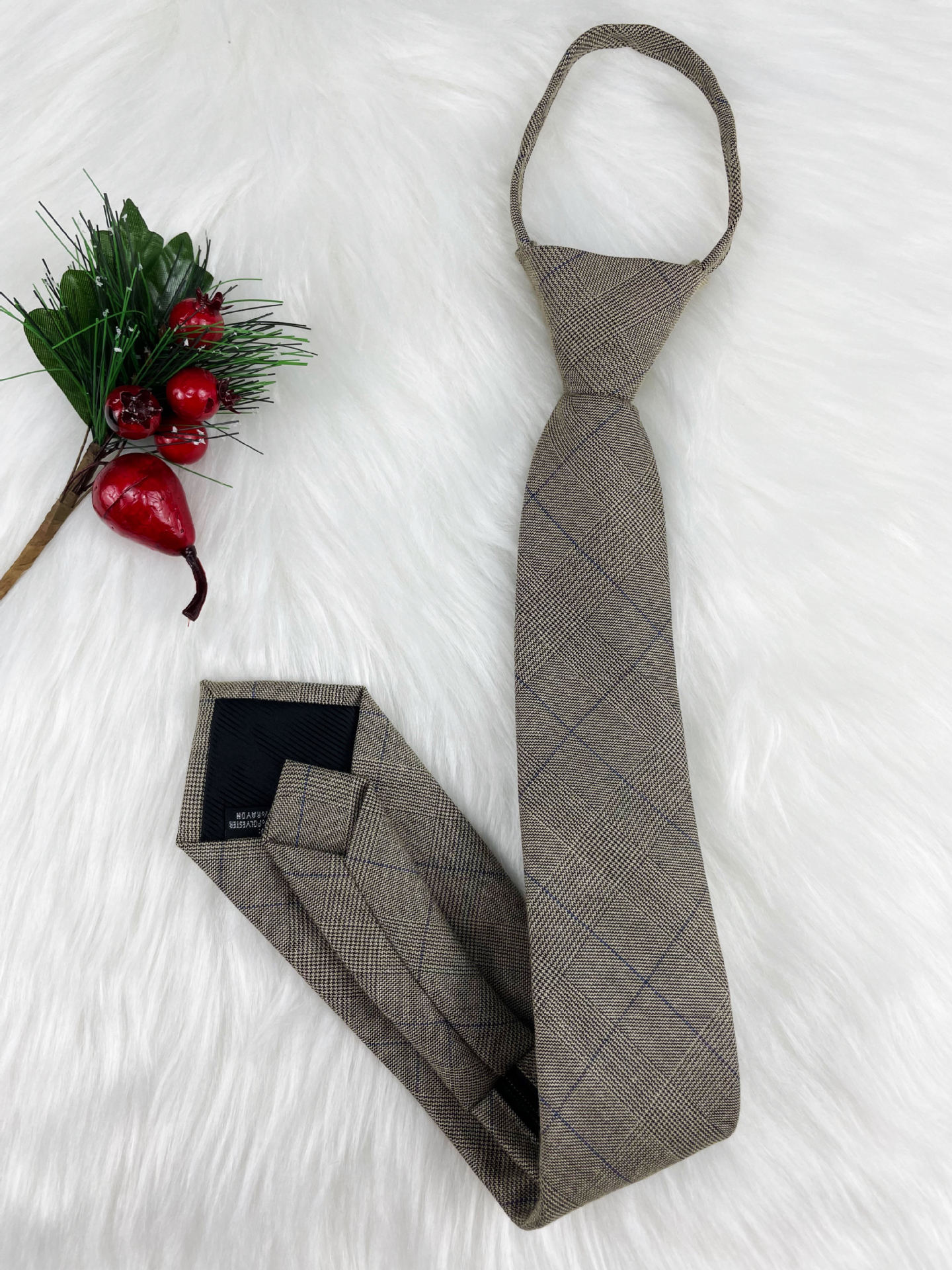 • 라이트 커피 격자 TR 면 지퍼 넥타이 * 48cm