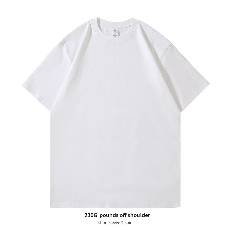 230g 무거운면 단색 반팔 티셔츠 여성용 라운드 넥 느슨한 흰색면 바닥 셔츠 여름 도매스토어 가기