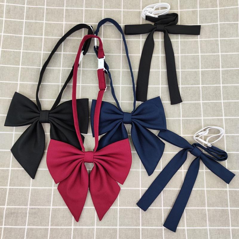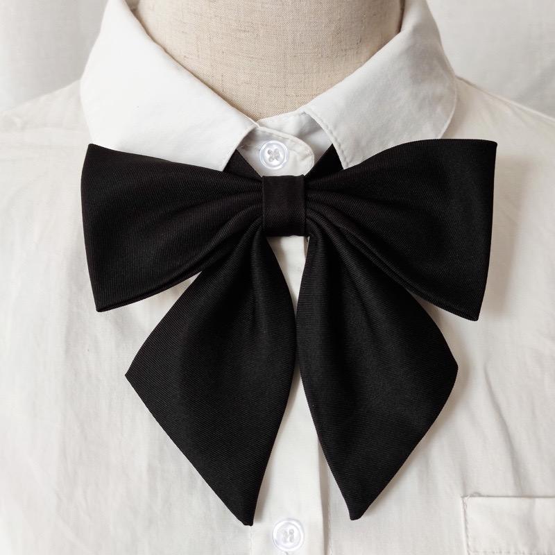 버건디 거대한 깃털 뿌리와 긴 손잡이 단색 일본어 jk 넥타이 나비 넥타이 칼라 꽃 여성 학생 유니폼 블랙