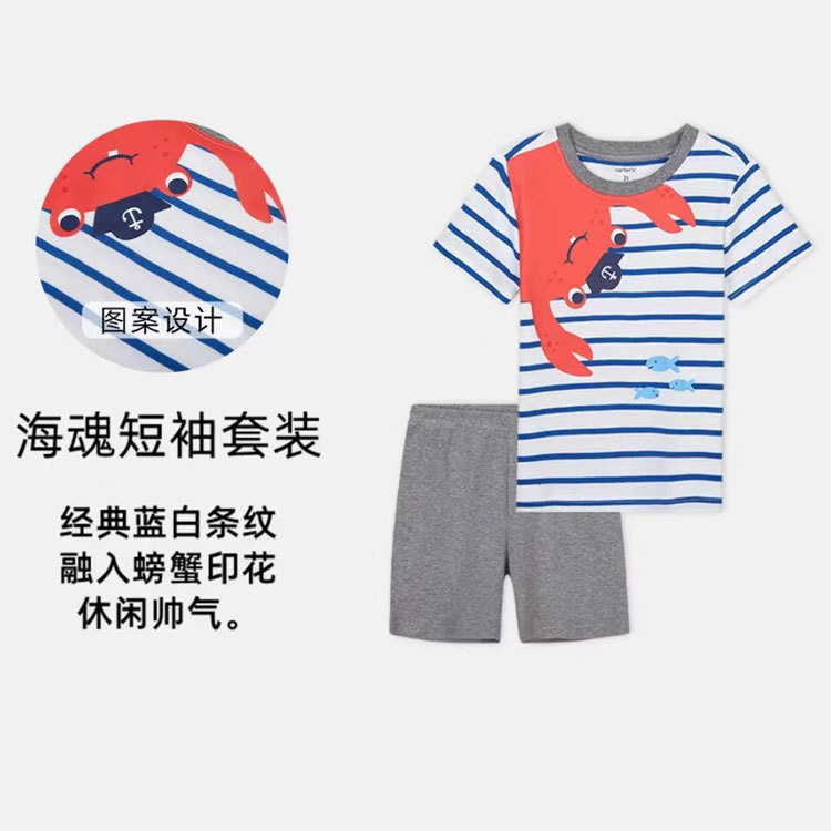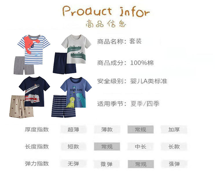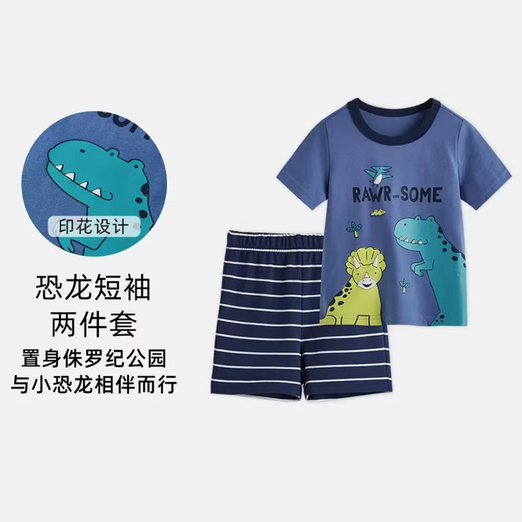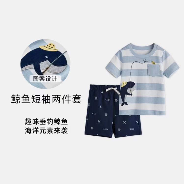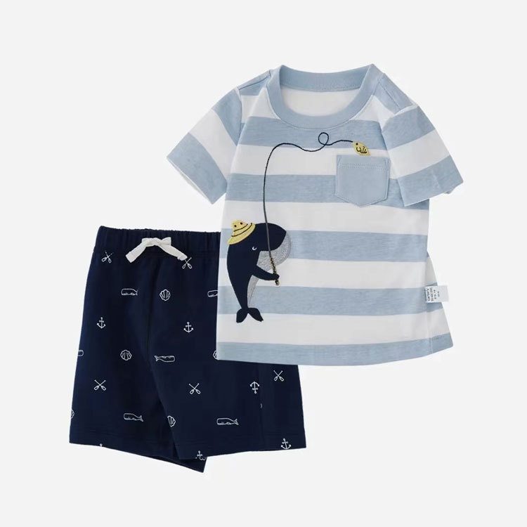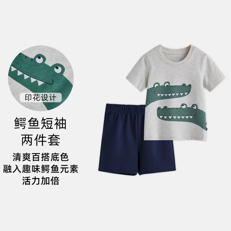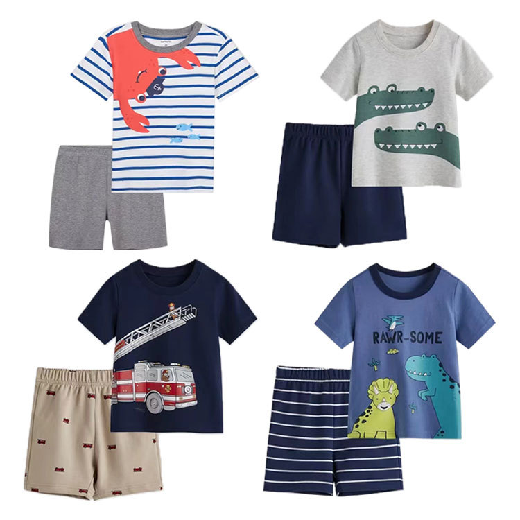 여름 남자 아기 2 장 세트 아기 반팔 티셔츠 반바지 세트 면 만화 아동복 도매스토어 가기