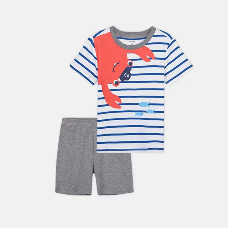 여름 남자 아기 2 장 세트 아기 반팔 티셔츠 반바지 세트 면 만화 아동복 도매