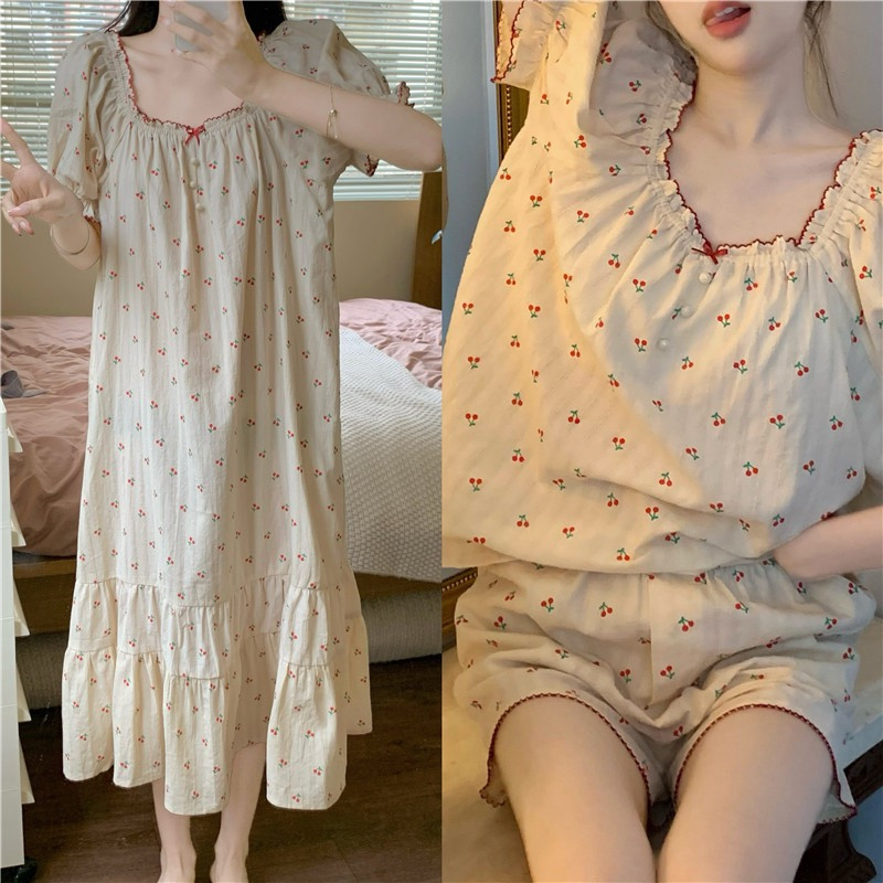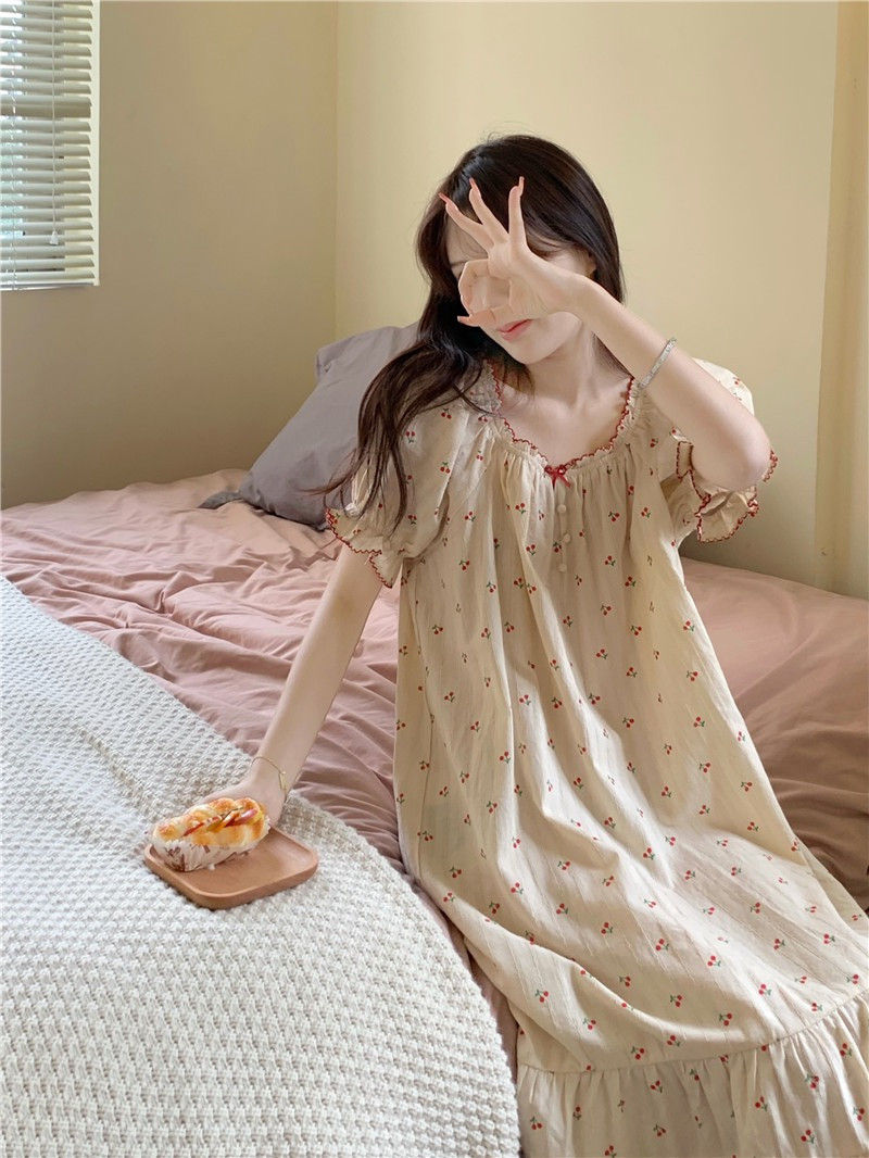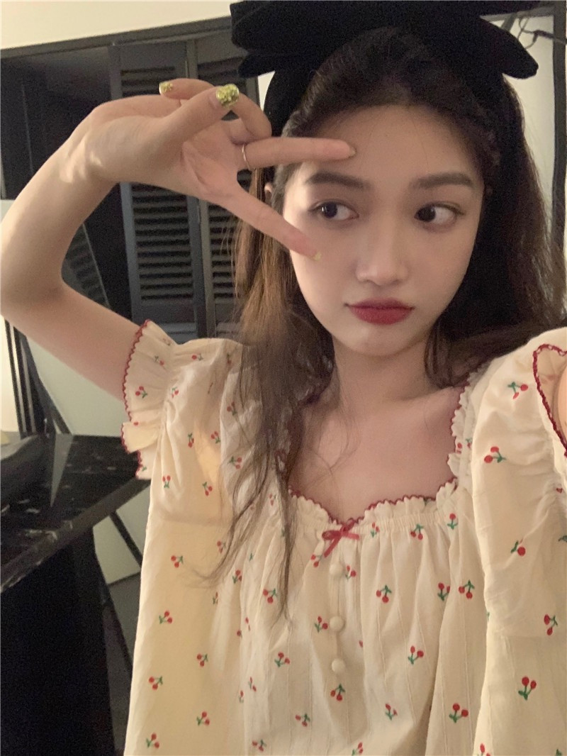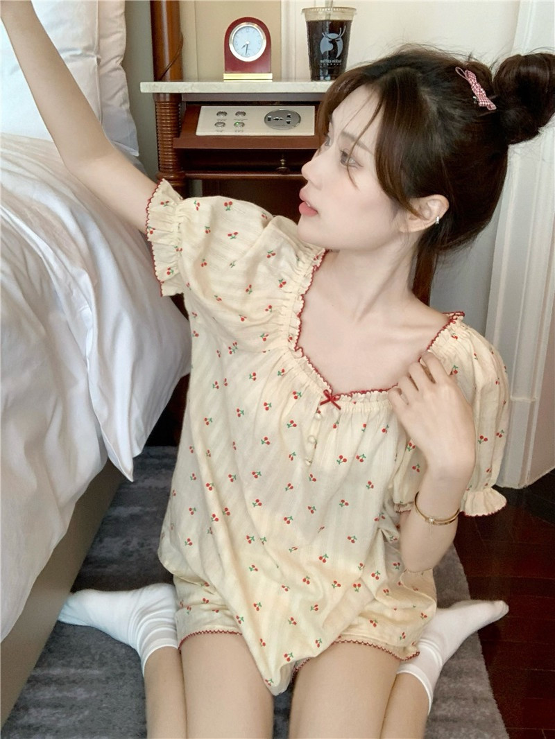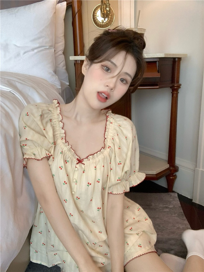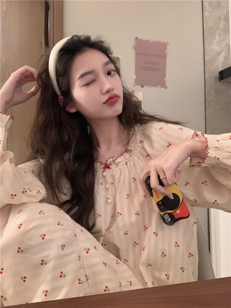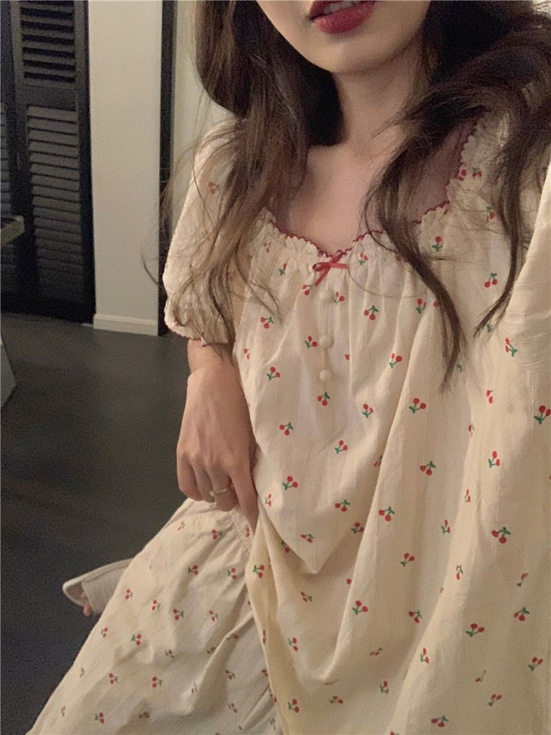 한국 in 여자의 한국어 달콤한 꿈 체리 로맨틱 인스턴트 비전 대비 레이스 가정 옷 잠옷/잠옷