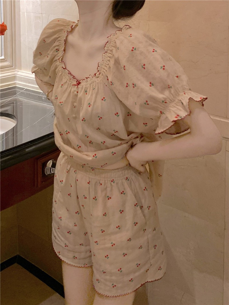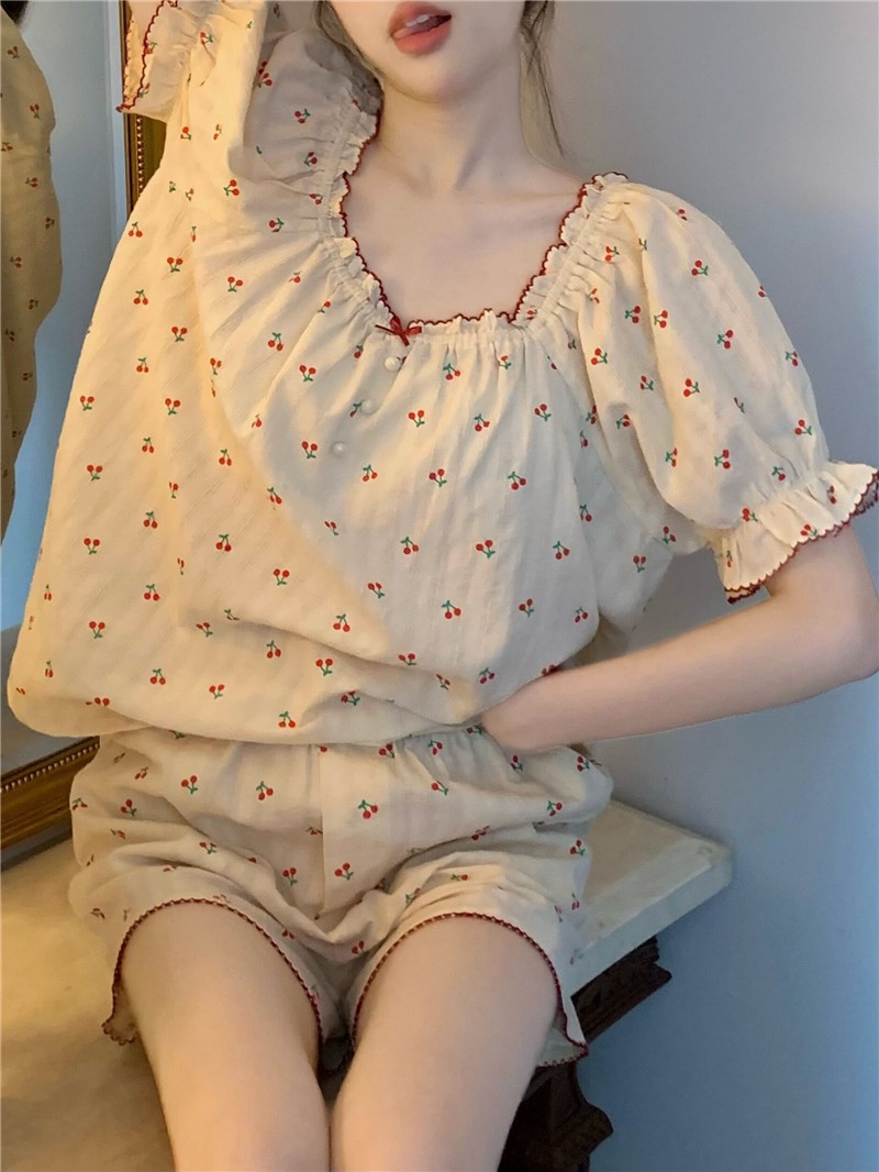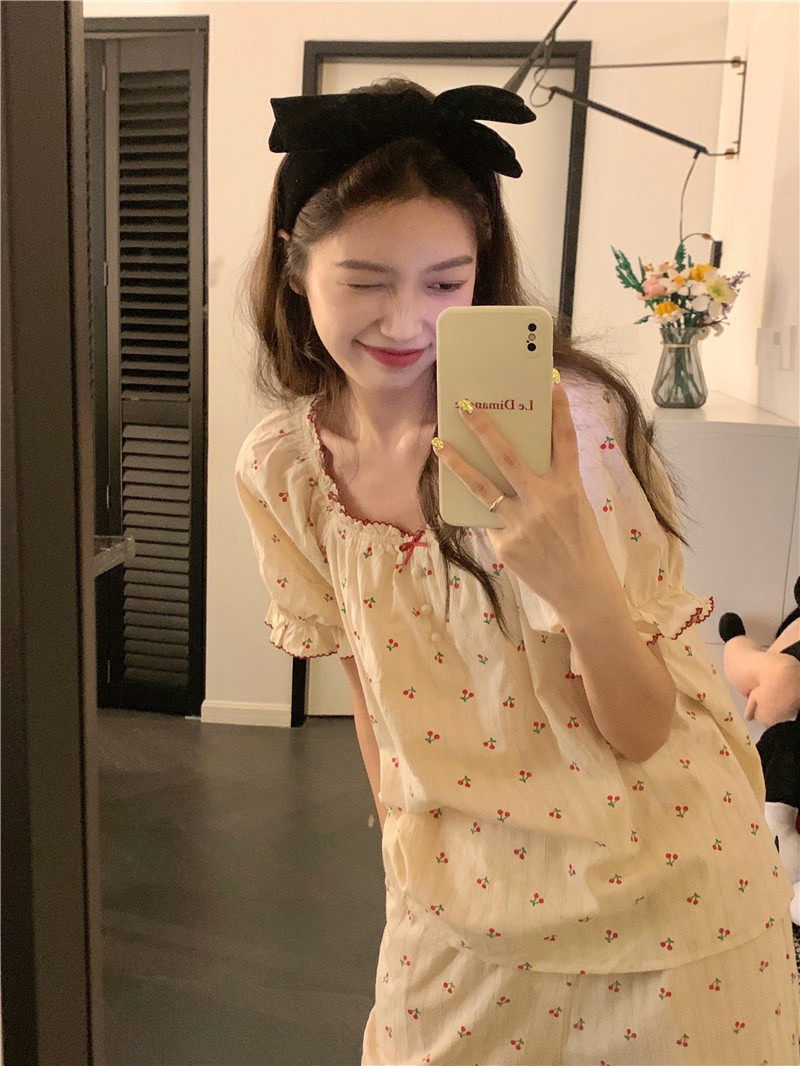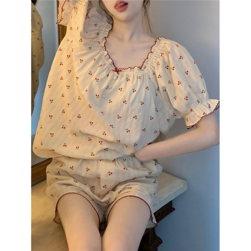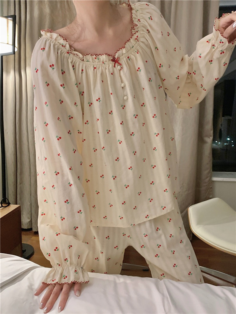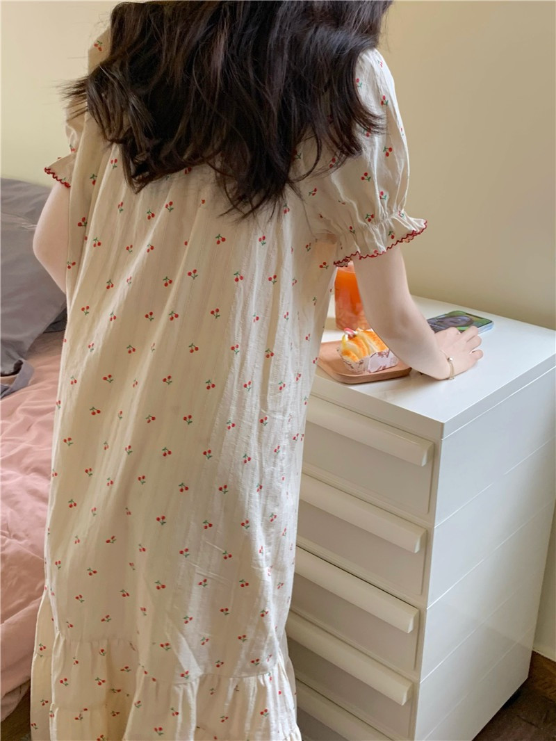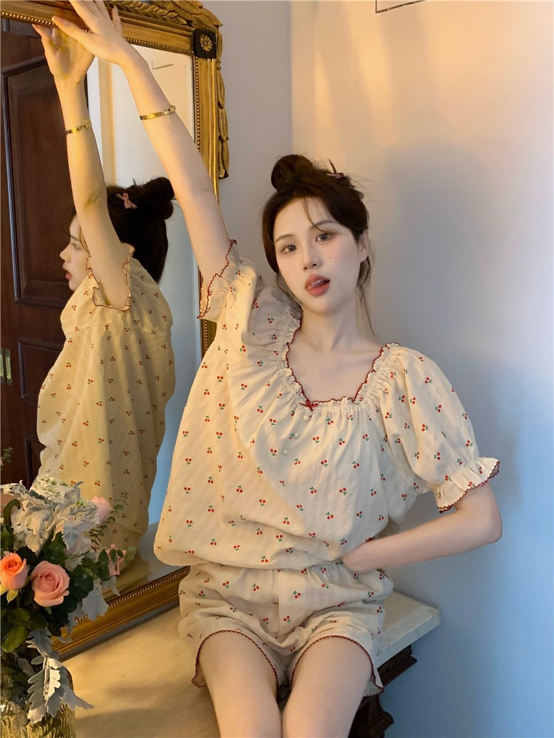 한국 in 여자의 한국어 달콤한 꿈 체리 로맨틱 인스턴트 비전 대비 레이스 가정 옷 잠옷/잠옷
