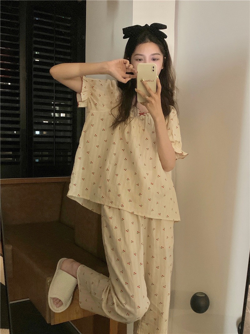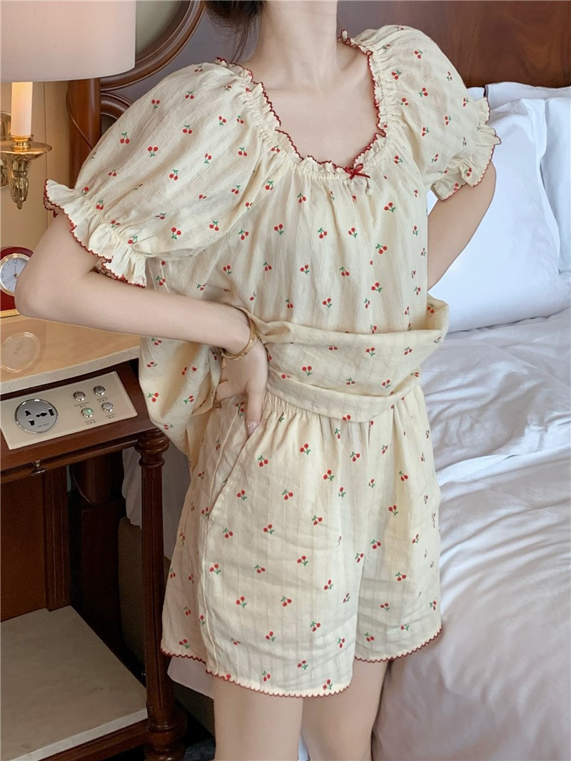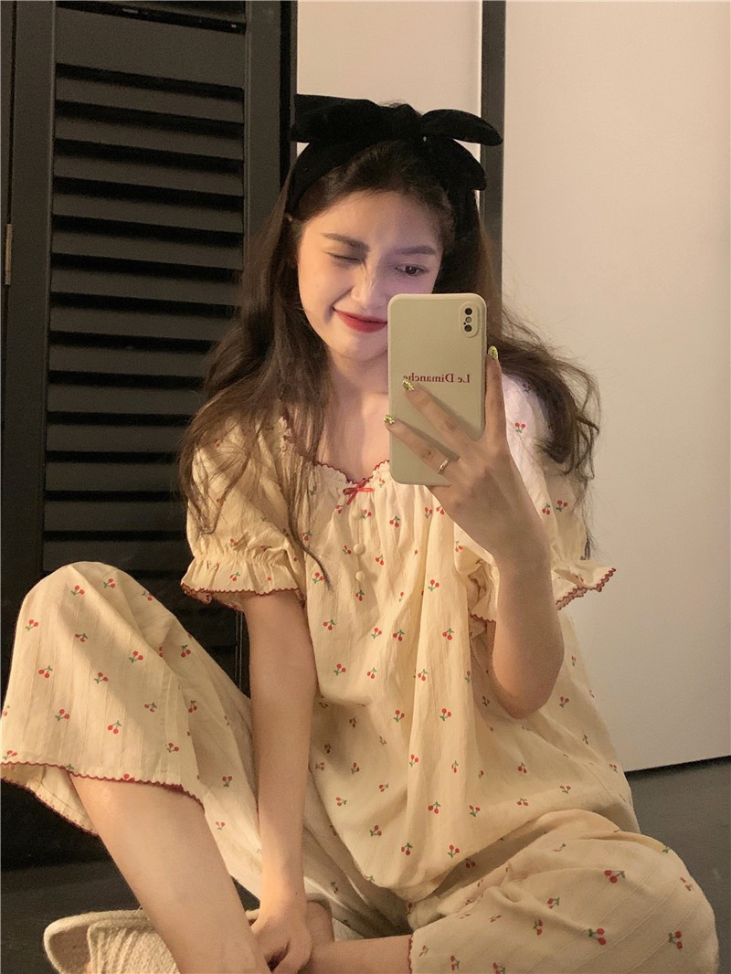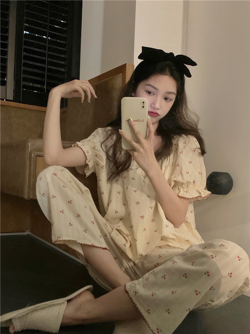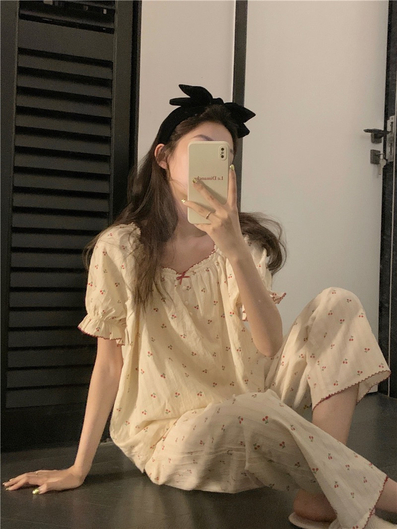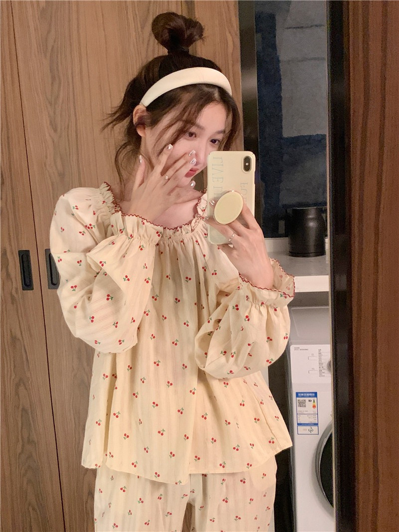 한국 in 여자의 한국어 달콤한 꿈 체리 로맨틱 인스턴트 비전 대비 레이스 가정 옷 잠옷/잠옷