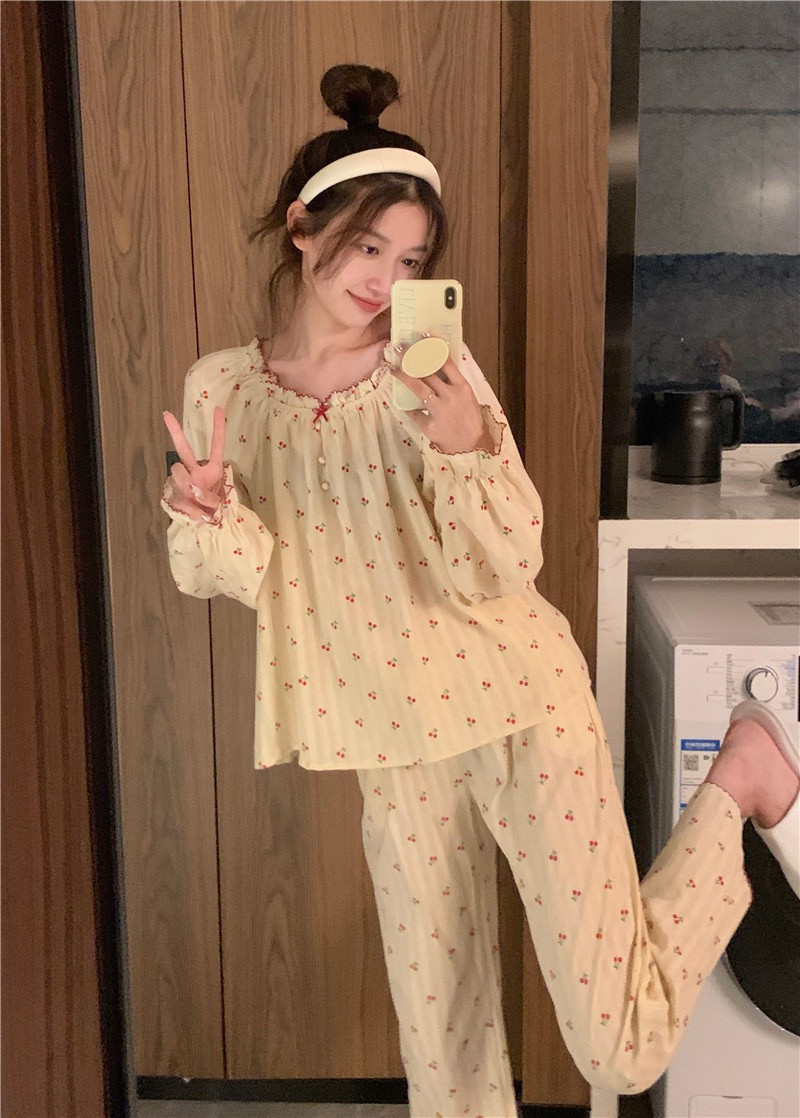 한국 in 여자의 한국어 달콤한 꿈 체리 로맨틱 인스턴트 비전 대비 레이스 가정 옷 잠옷/잠옷스토어 가기