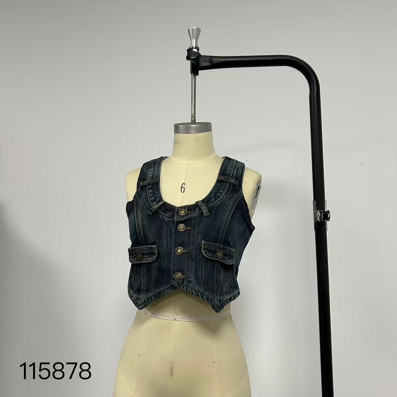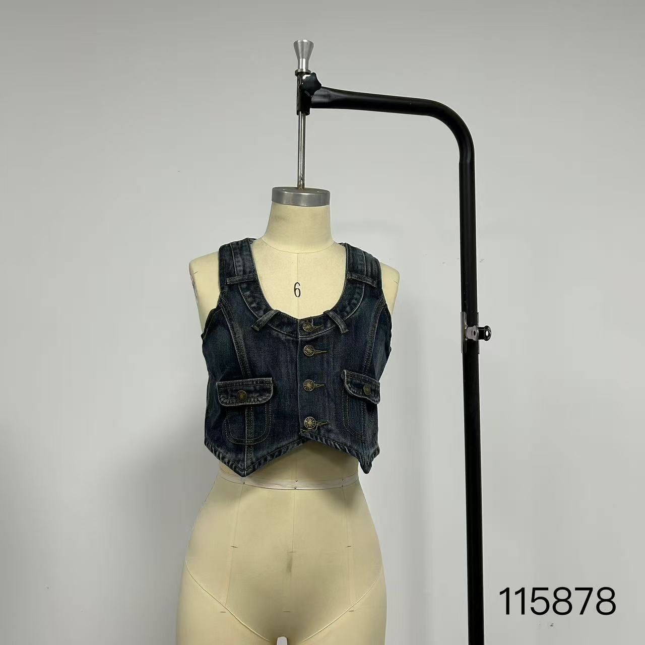 공장 직판 유럽 및 미국 해외 무역 크로스보더 공급원료 레트로 슬림핏 데님 조끼 여성용 아마존 인기 상품스토어 가기
