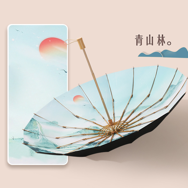 새로운 3단 16본 손으로 열리는 비가 오나 눈이 오나 고대 스타일의 창의적인 파라솔과 로고가 인쇄된 선물 우산 접는 우산스토어 가기