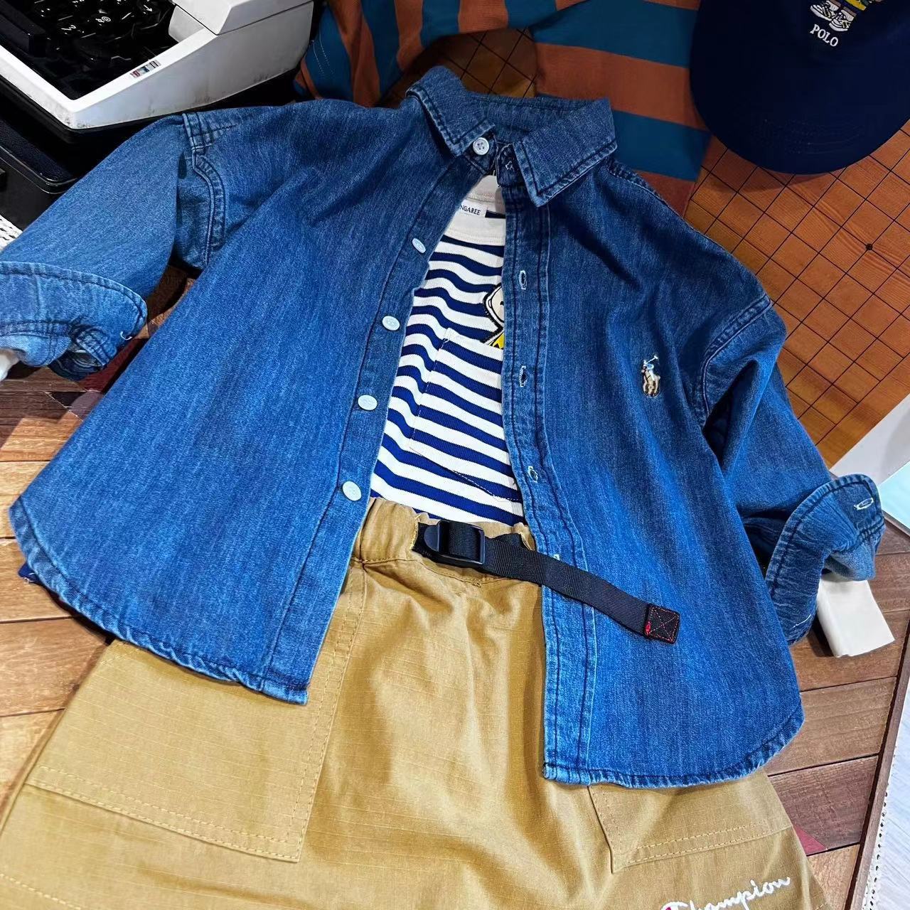 2026SS 리턴 어린이 신상품 남아 여아 올드머니 스타일 아메리칸 스타일 리틀호스 데님 셔츠 상의스토어 가기