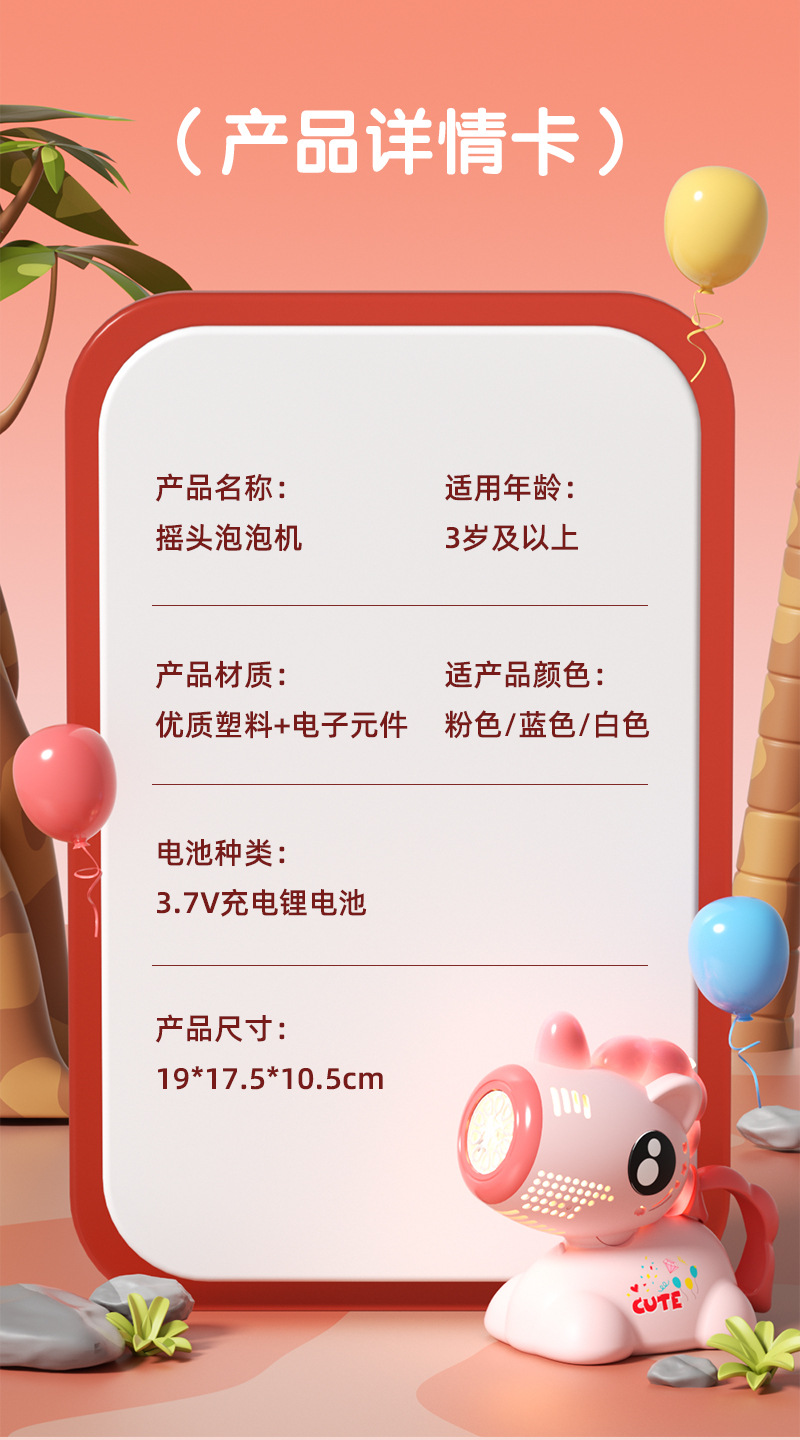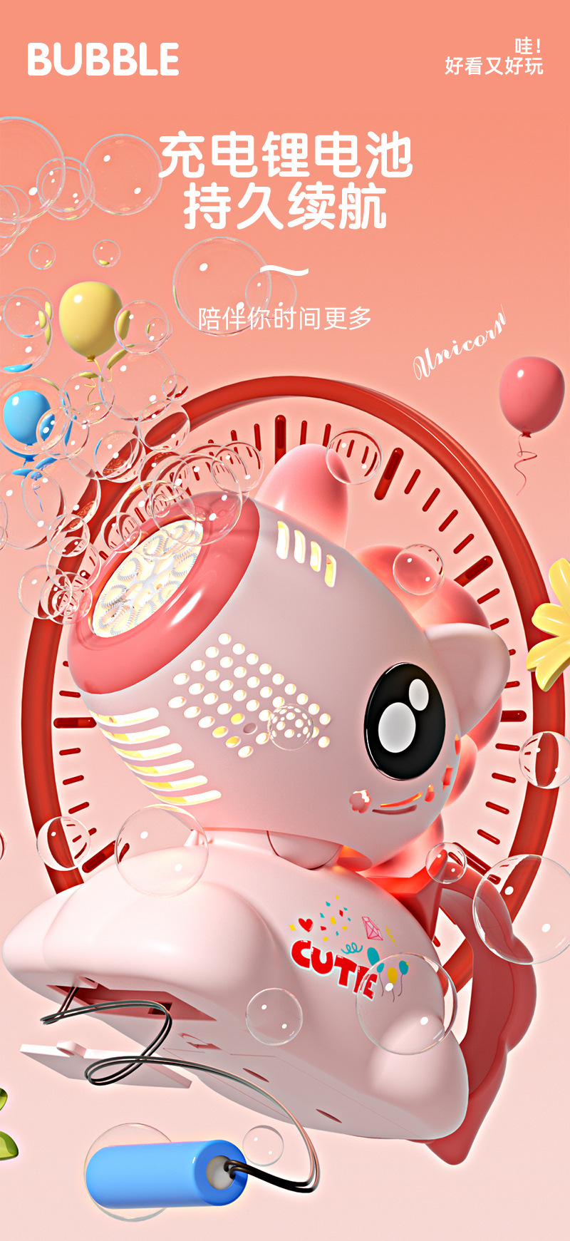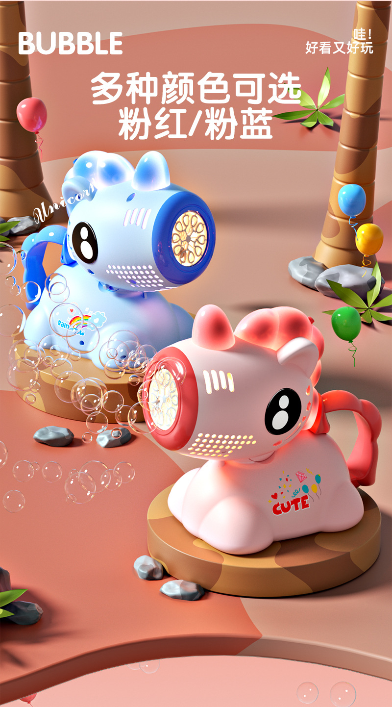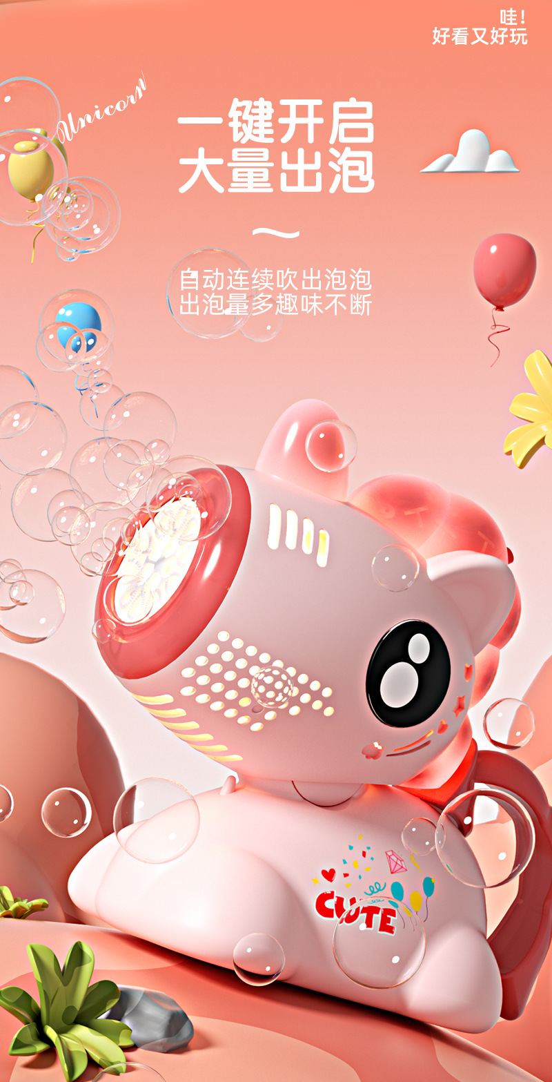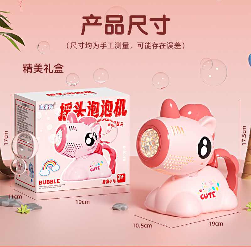• 유니콘 쉐이킹 헤드 라이트 버블 머신 [충전식 모델] 핑크