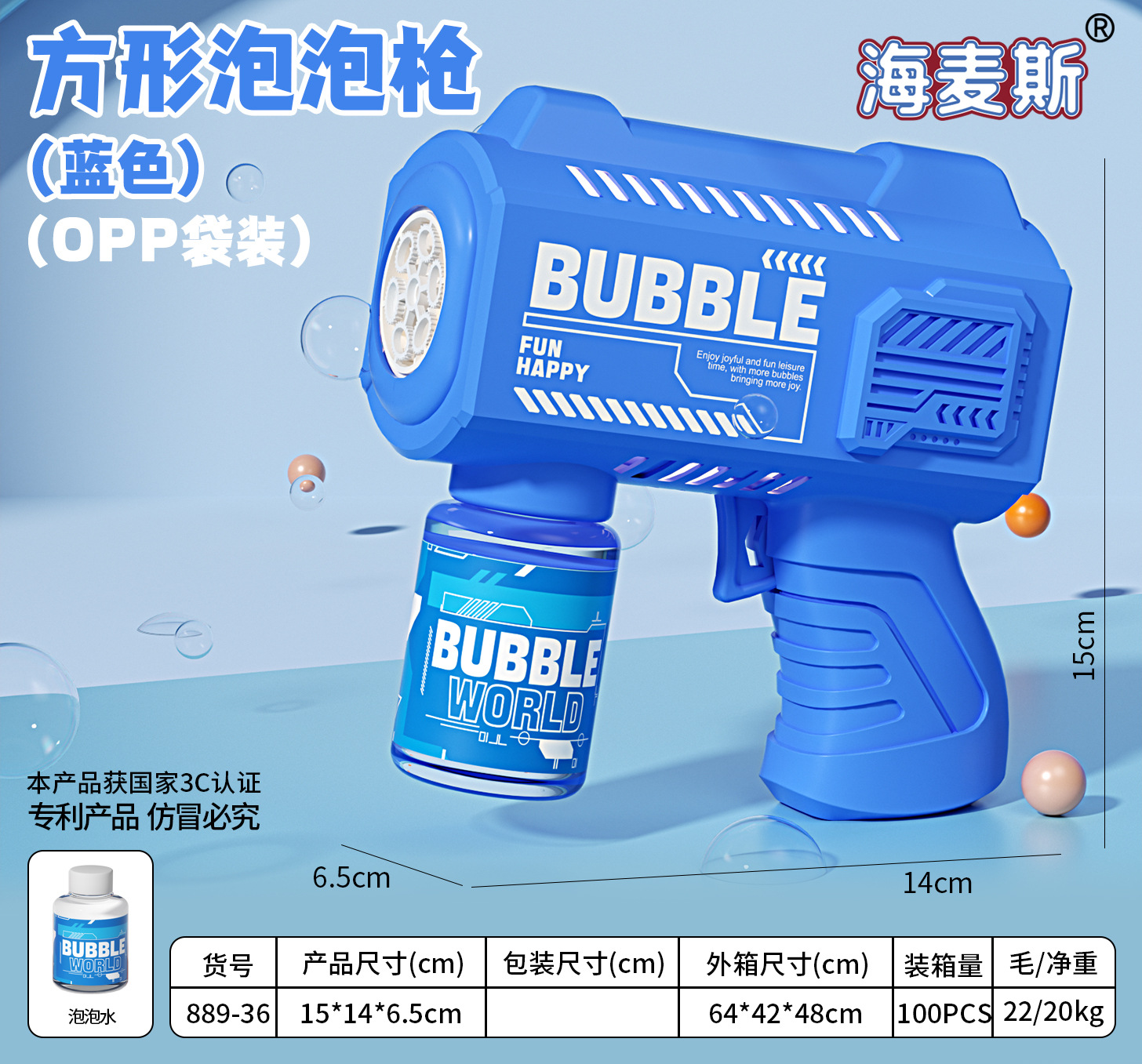 • 변형 이중 기능 버블 머신 - 배터리 버전 [블루] 스티커 + 버블 워터 100ml 포함