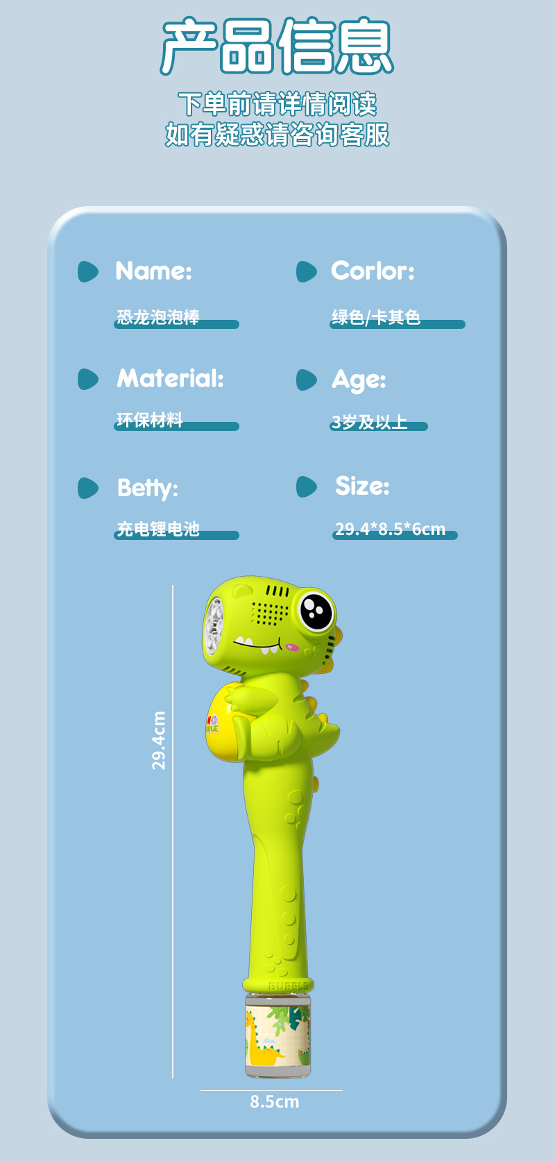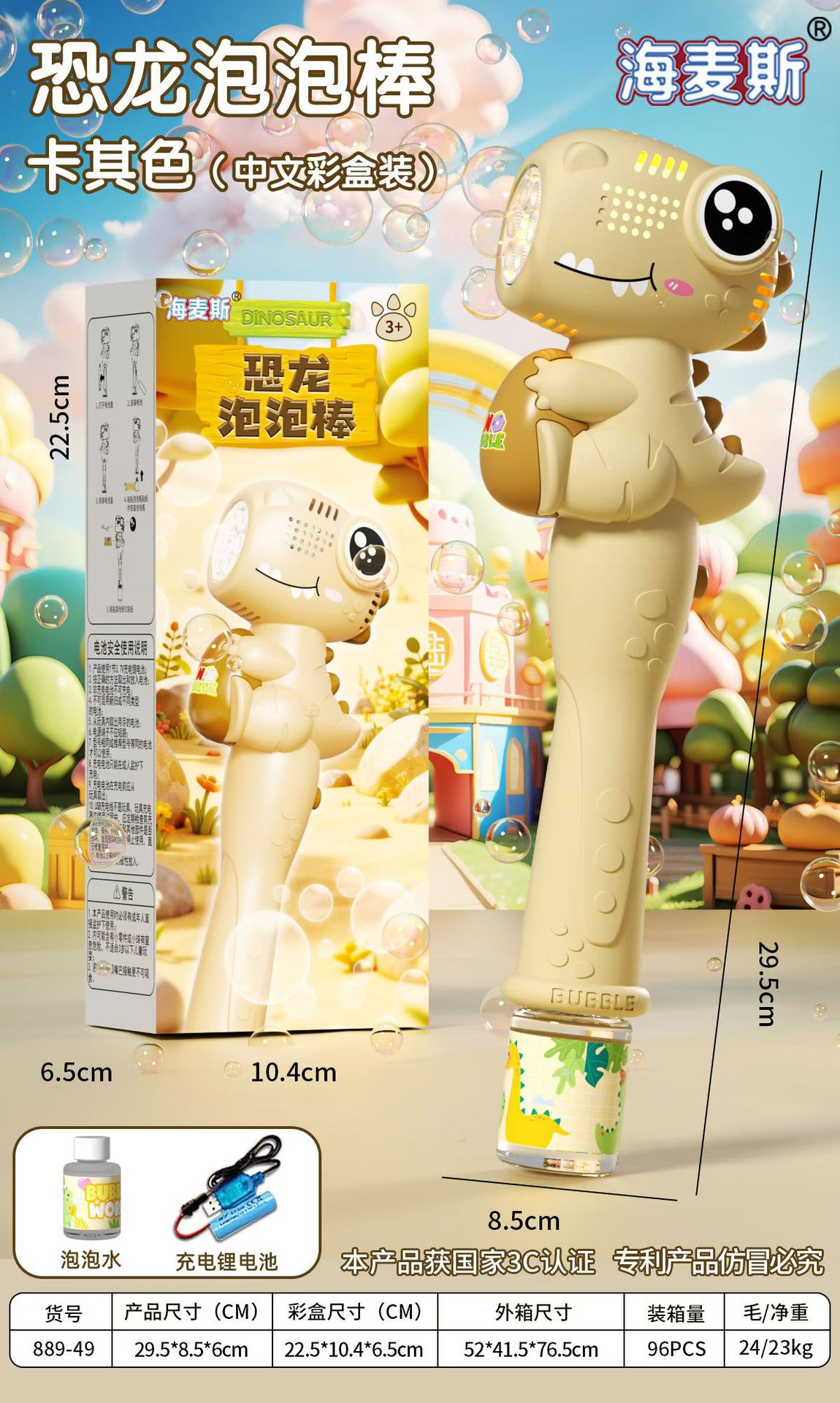 • 공룡 버블 스틱 [충전식] 카키색 (선물 세트)