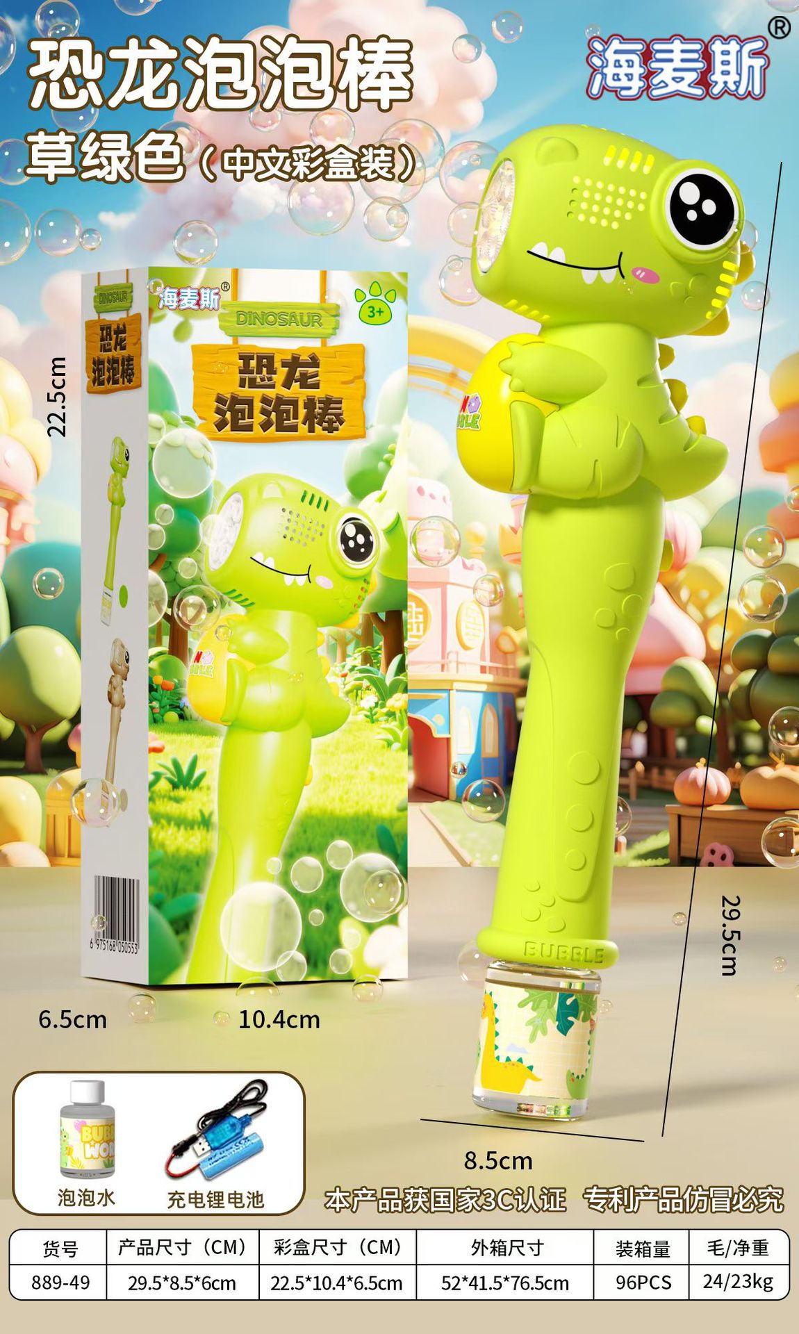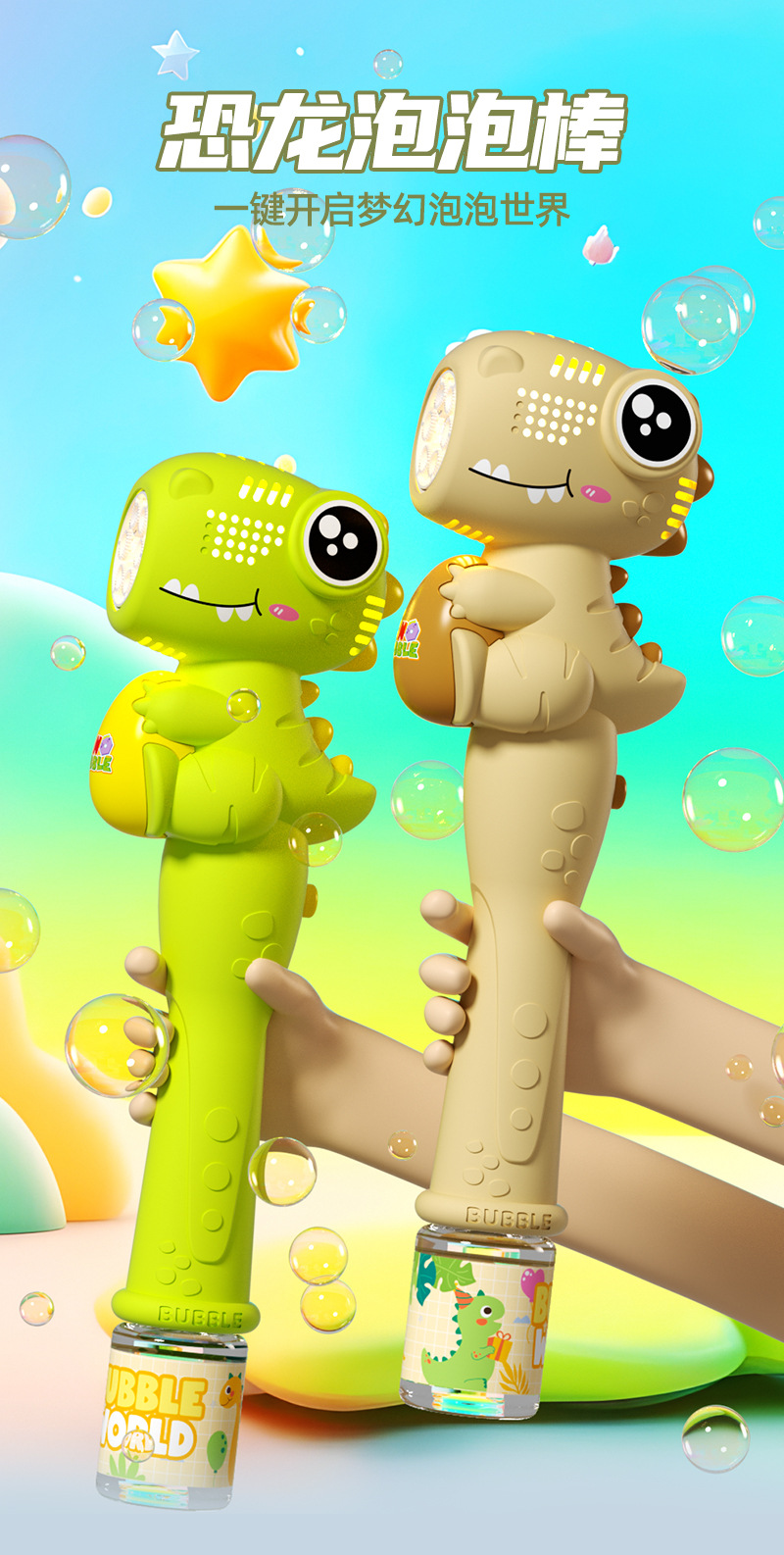 • 공룡 버블 스틱 [충전식] 마카롱 그린 (선물 세트)