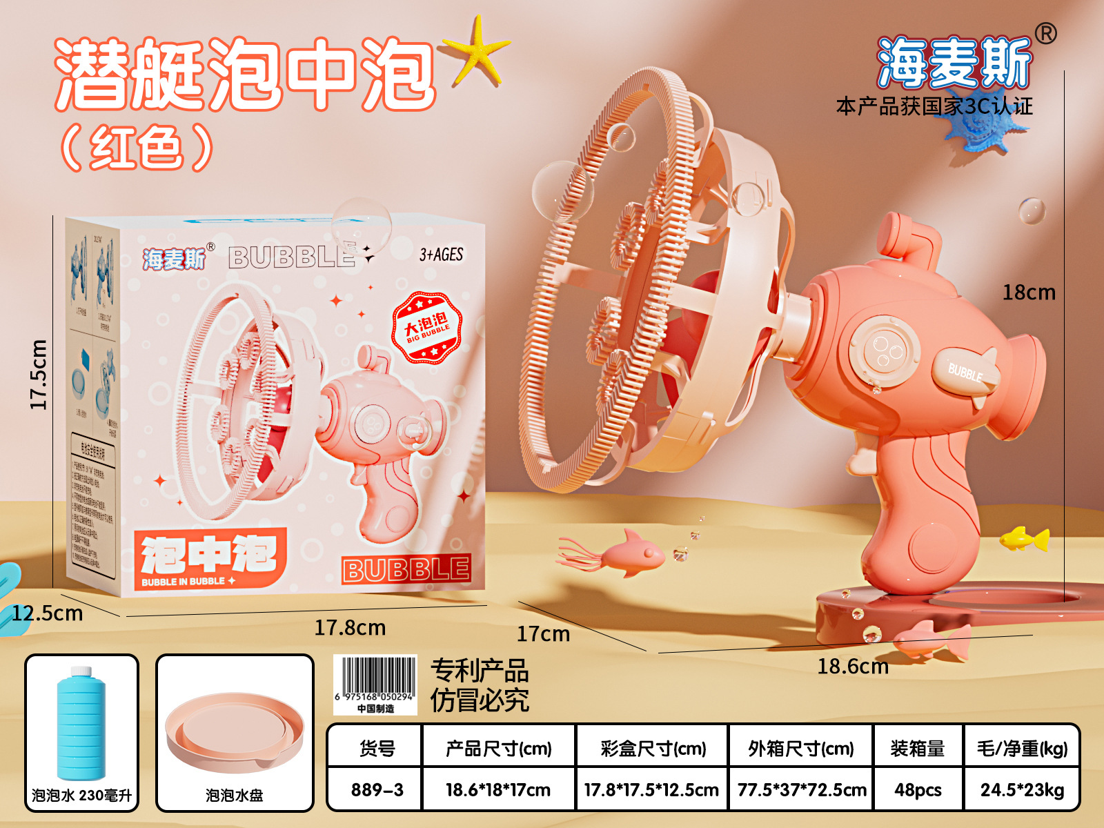 • 잠수함 버블 레드 [배터리 포함] 절묘한 선물 상자