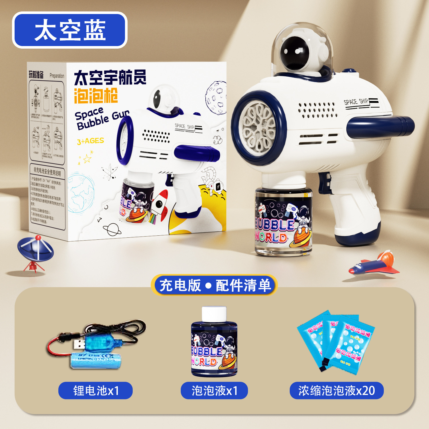 • 우주 비행사-블루 버블 머신 물총 [충전식 버전] 100ml 버블 워터