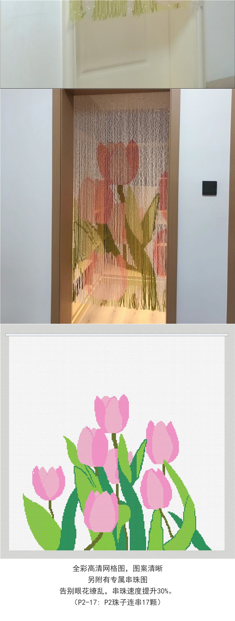 비즈 커튼 튤립 비즈 도어 커튼 꽃 커튼 거실 입구 문 현관 파티션 장식 펜던트스토어 가기