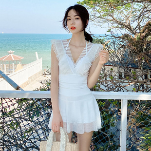 꽃무늬 원피스 수영복 여성용 스커트 스타일, 한국과 일본의 레트로 스타일, 허리를 잘록하게 잡아주는 슬리밍 효과, 플러스 사이즈, 온천 수영복, 슬림핏스토어 가기