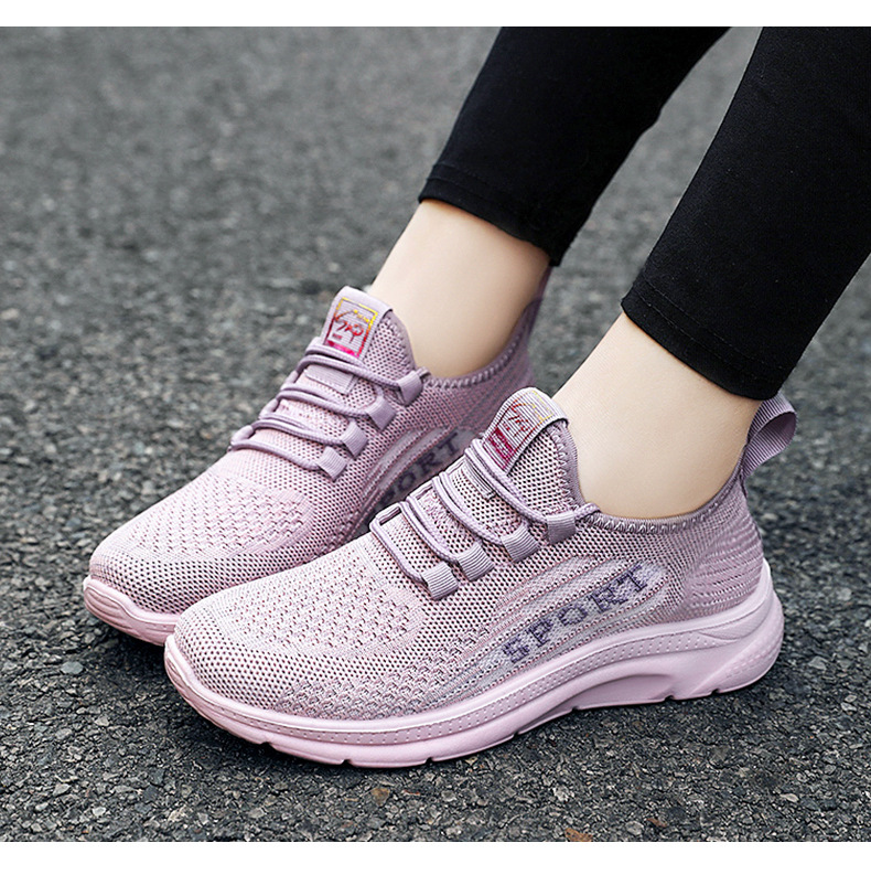 여성용 봄 신발 도매 대외 무역 대형 사이즈 메쉬 통기성 운동화 플라이 니트 경량 소프트솔 러닝화 통기성 경량