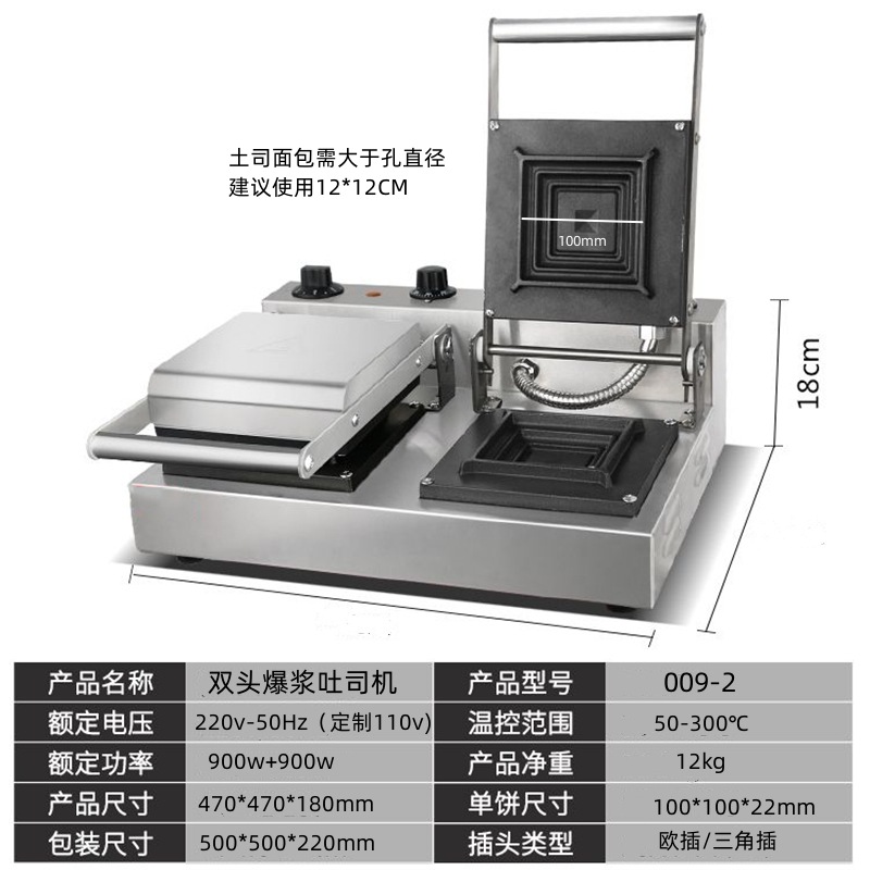 더블 헤드 샌드위치 기계 터지는 침 드라이버 핫 프레스 토스트 양면 가열 비행 접시 기계 상업 스콘 아침 식사 기계