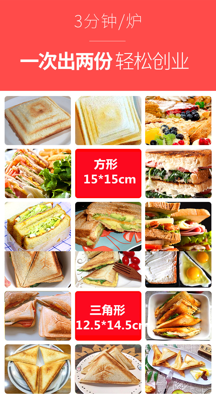 • 삼각형 샌드위치 기계 (가장자리 밀봉 없음, 폭발 없음)