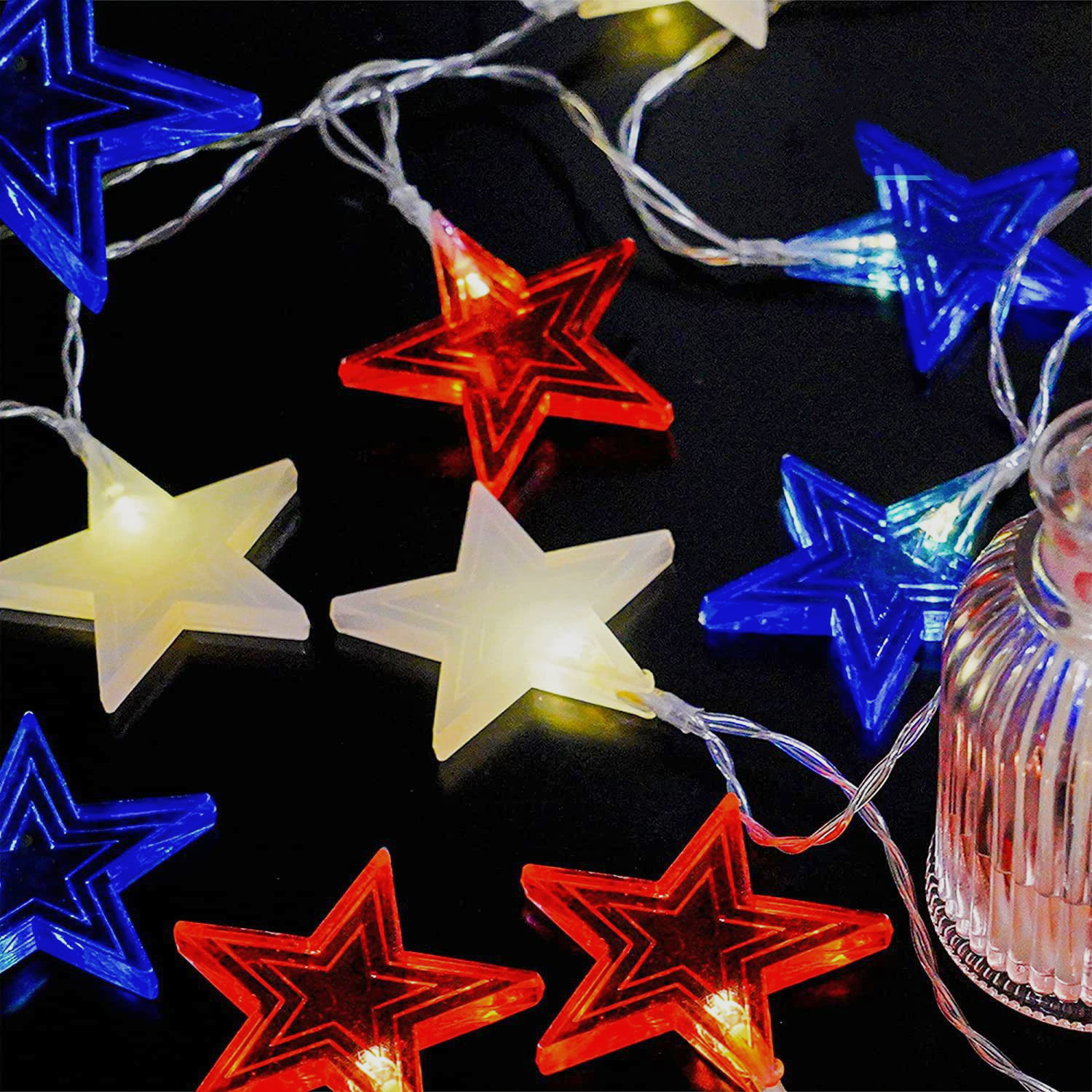 미국 독립기념일 장식 조명 LED 오각별 조명줄 빨강, 흰색, 파랑 별 조명줄 미국 크리스마스 조명