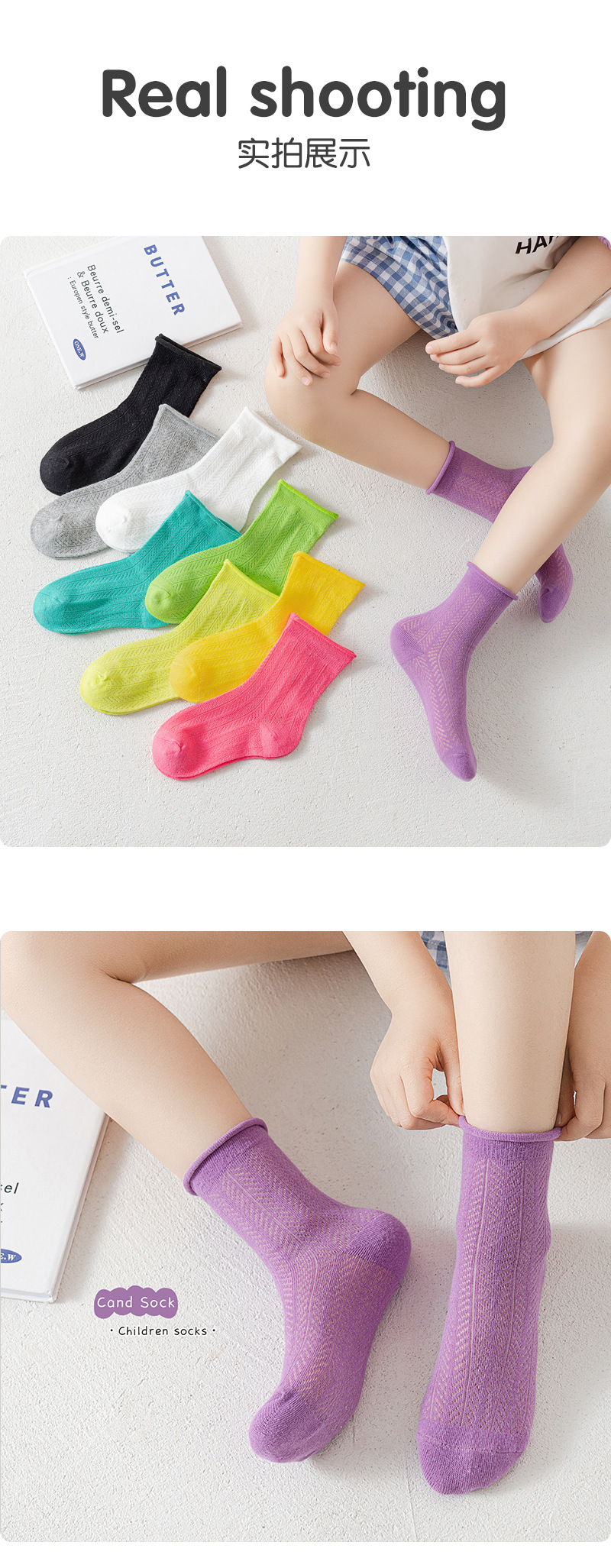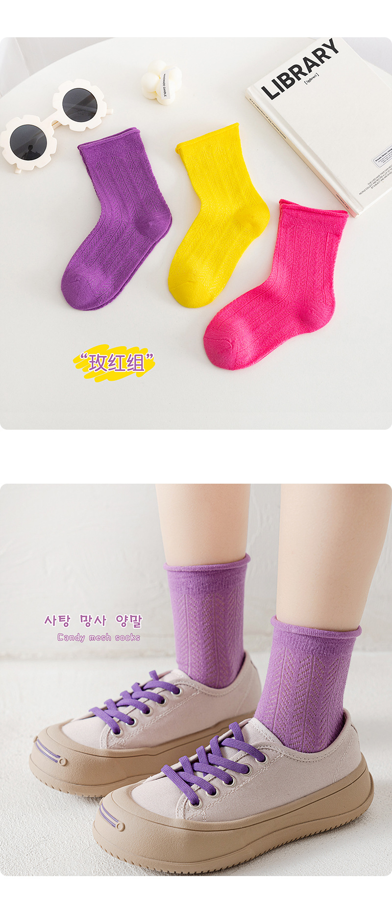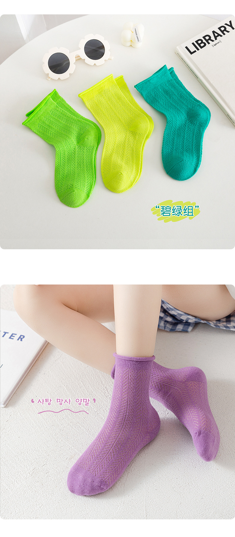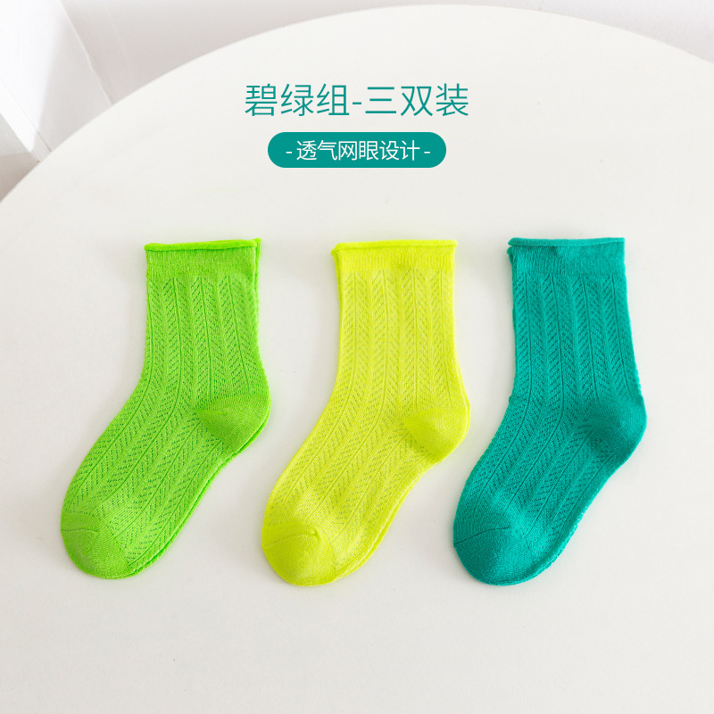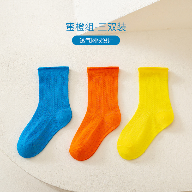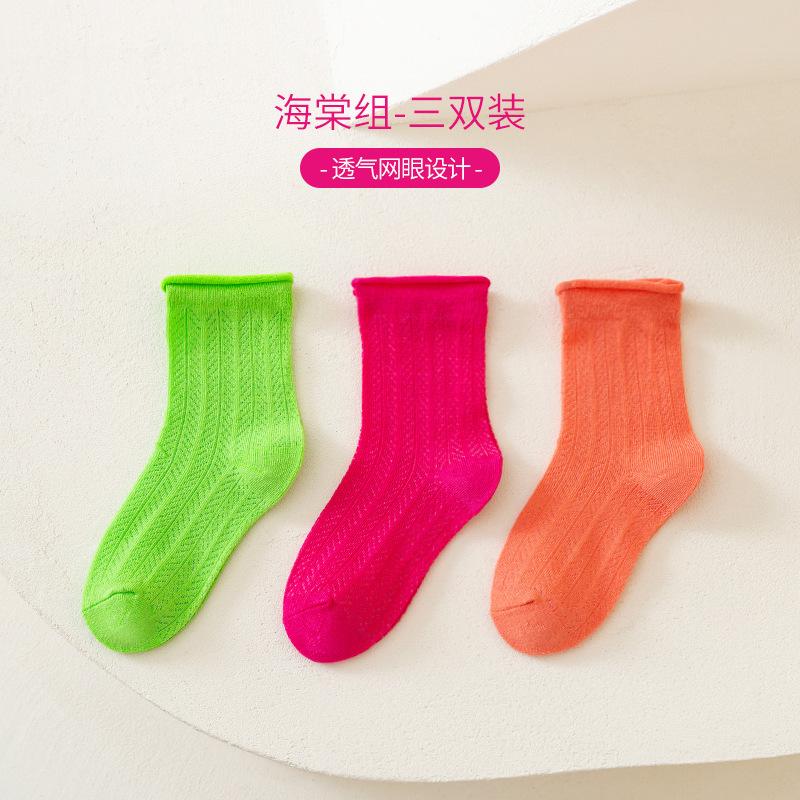 캔디 컬러 컬링 어린이 양말 2025 여름 새로운 메쉬 통기성 소년 소녀 튜브 양말 도매스토어 가기