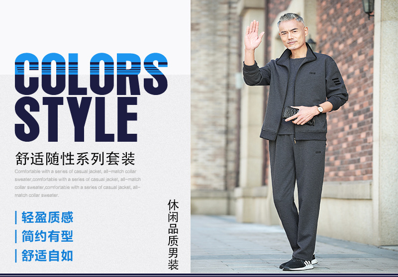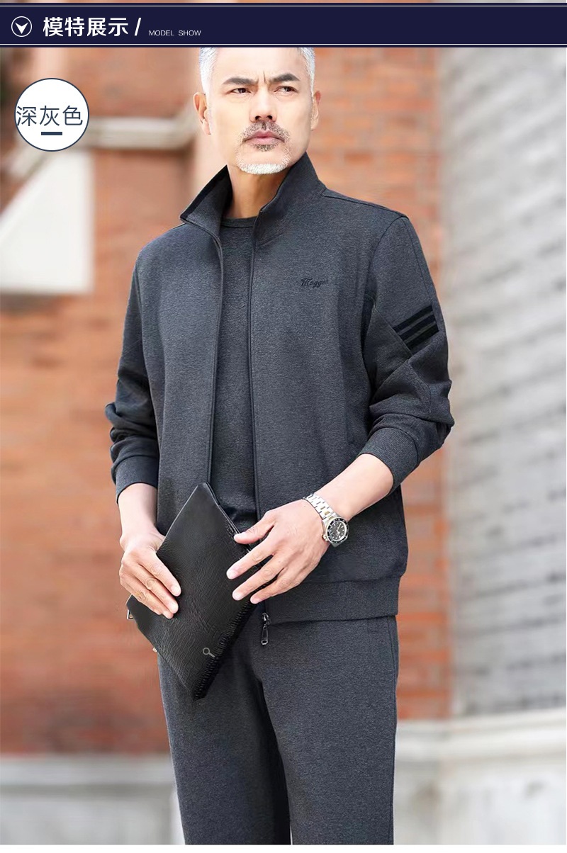 중노년 남성용 스포츠복 세트, 봄, 가을, 겨울용, 중노년 아빠들을 위한 캐주얼 스포츠웨어, 남성용 투피스 세트스토어 가기