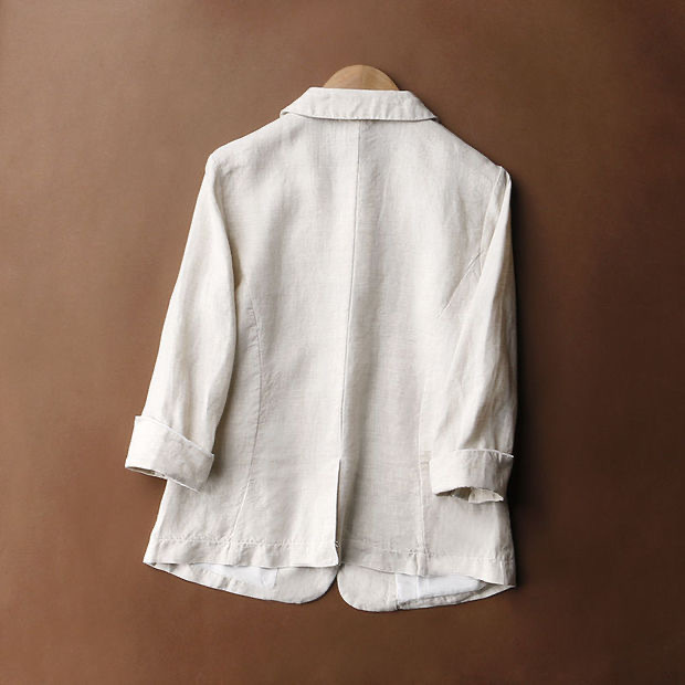 2025 봄 가을 신상 대형 사이즈 패션 루즈핏 솔리드 컬러 면마 혼방 7부 소매 여성용 블레이저 재킷스토어 가기
