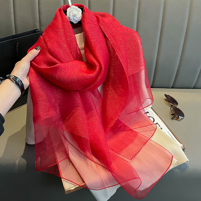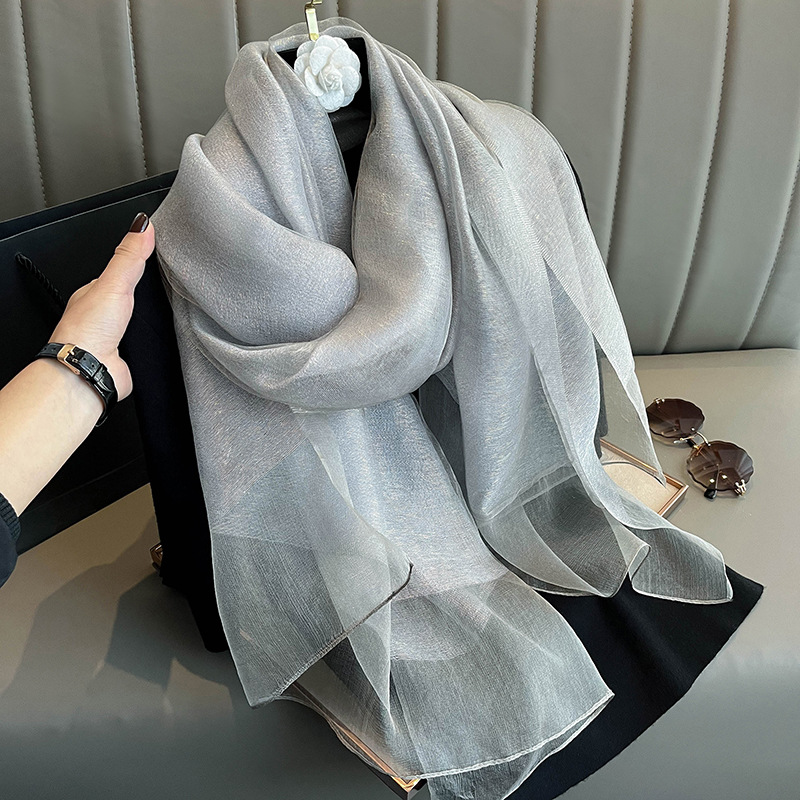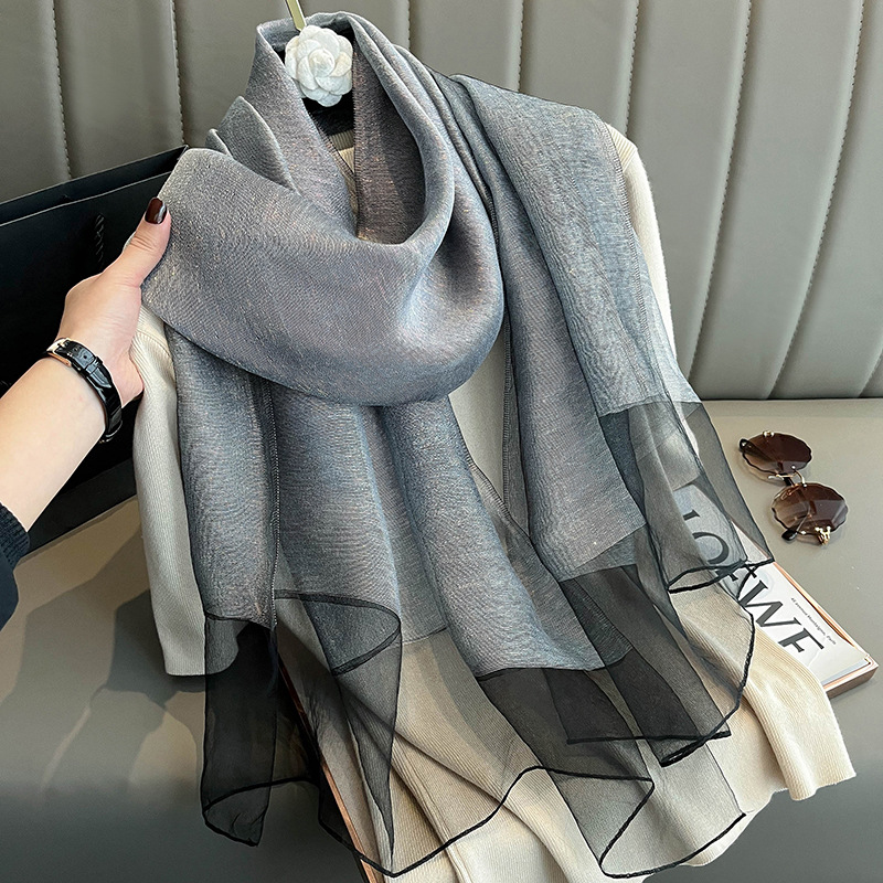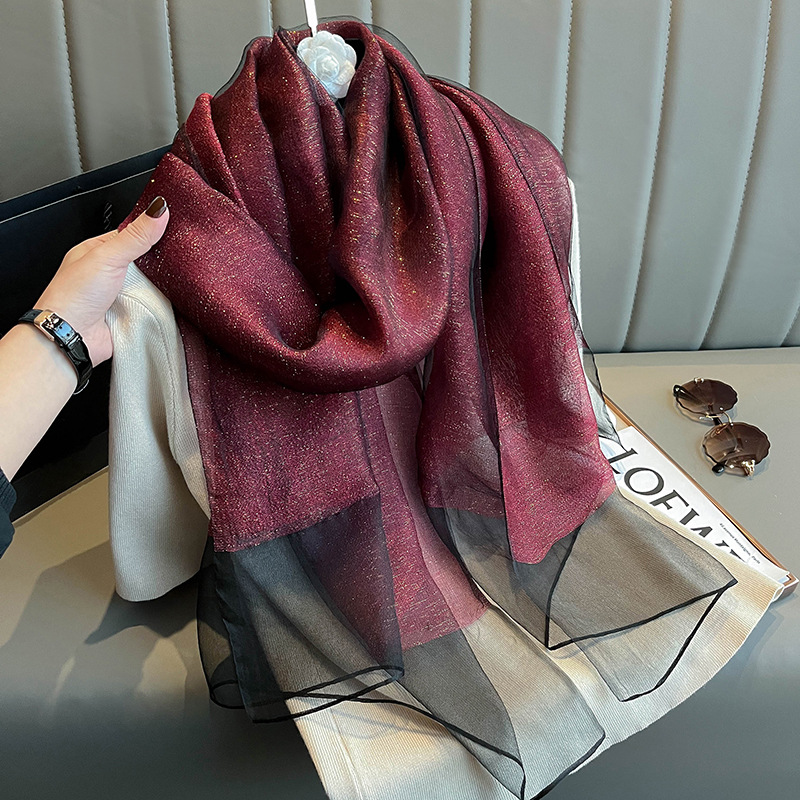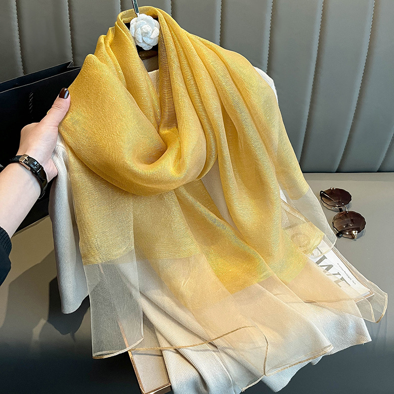 유럽과 미국의 간단한 금실 더블 레이어 실크 스카프 여성의 하이 엔드 뽕나무 실크 숄 봄 올 매치 롱 스카프