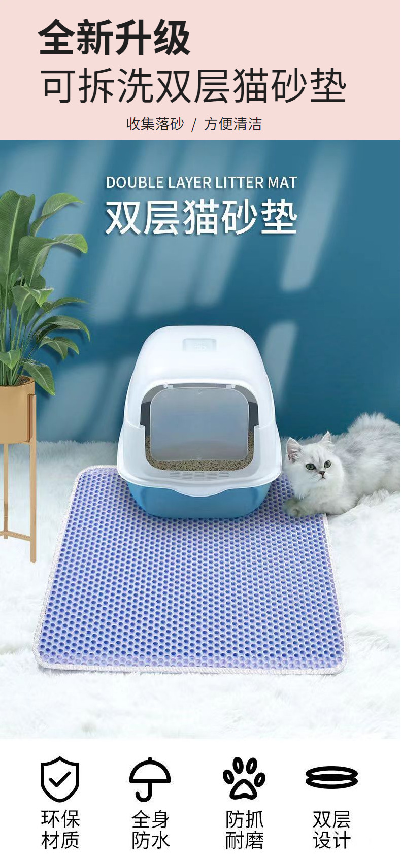 뜨거운 판매 아마존 세대 국경 분리 가능 빨 EVA 고양이 쓰레기 상자 매트 도매 고양이 쓰레기 매트