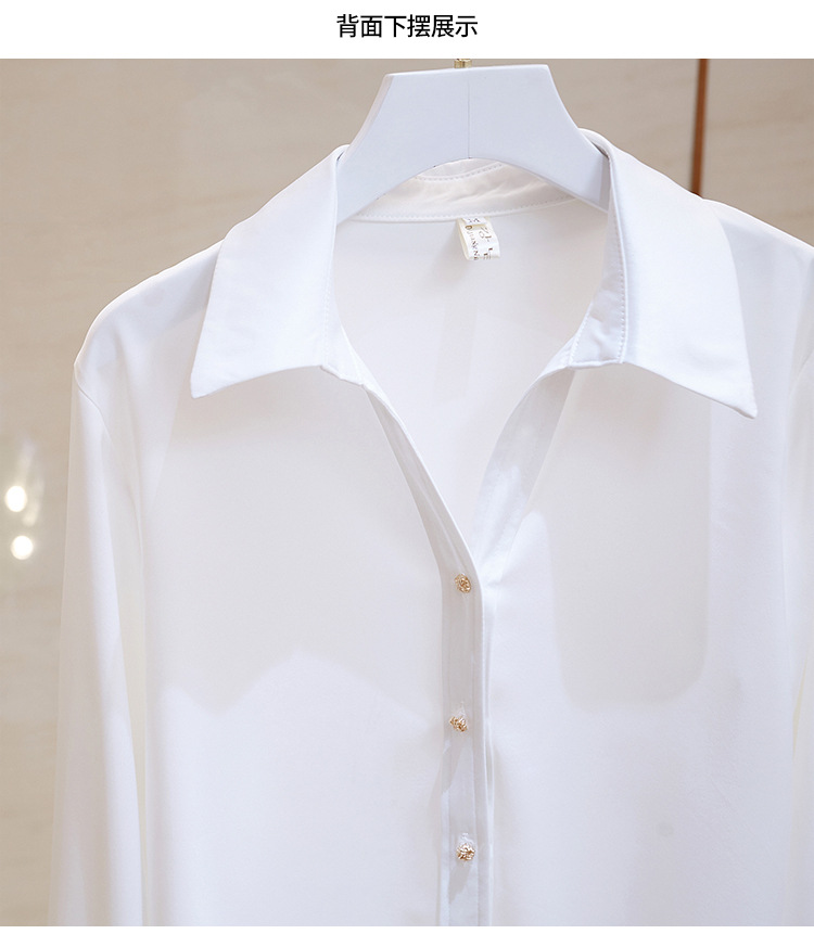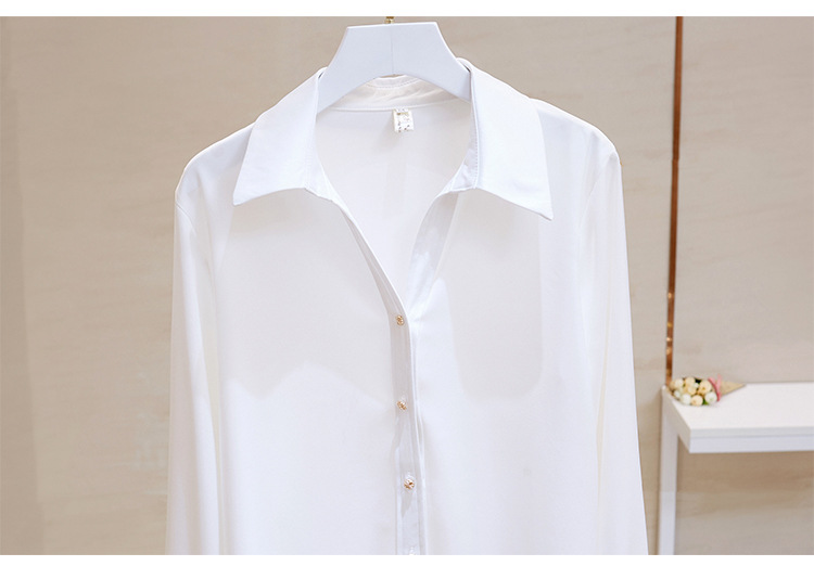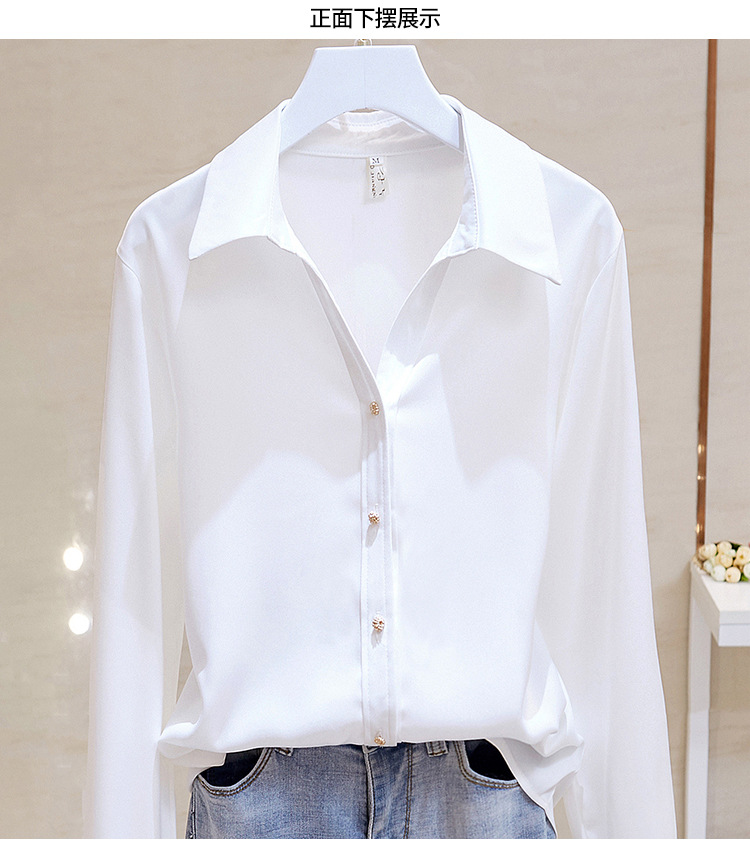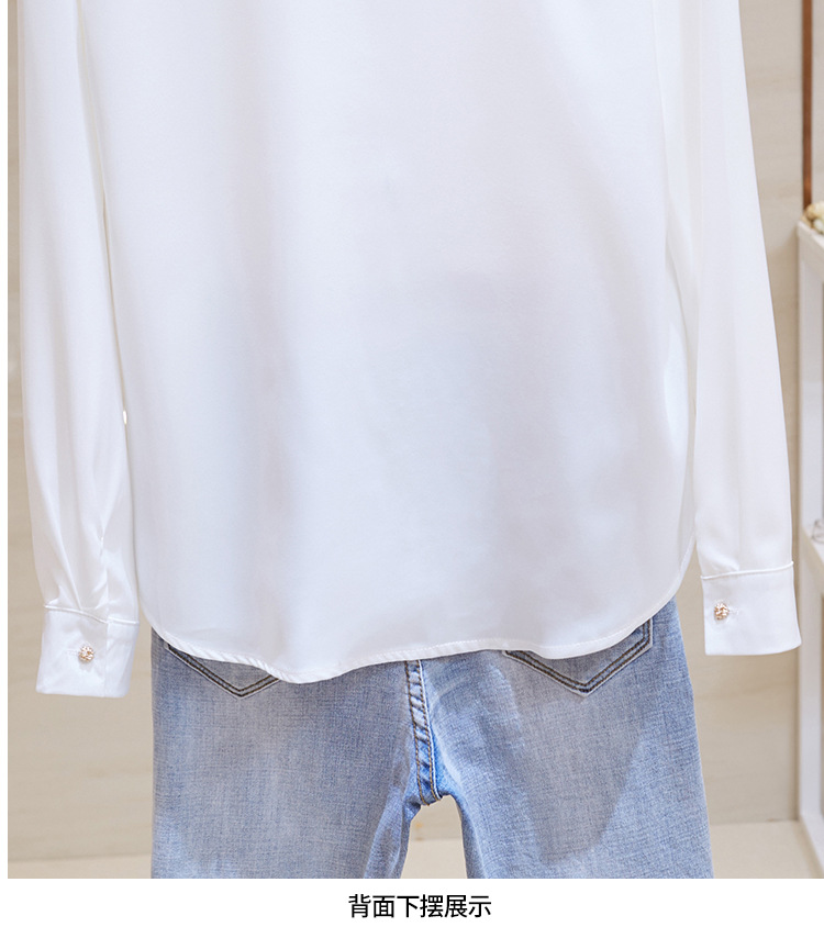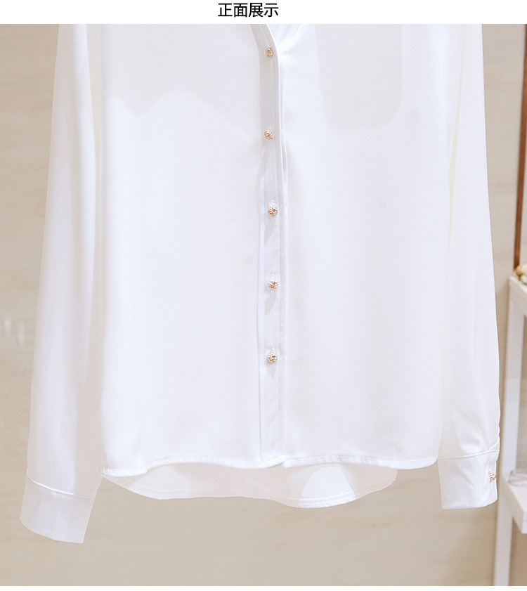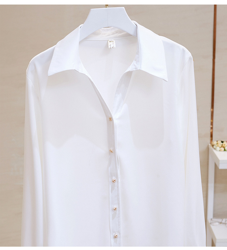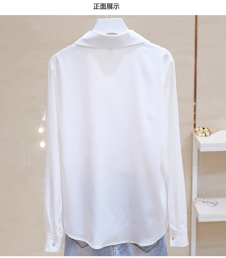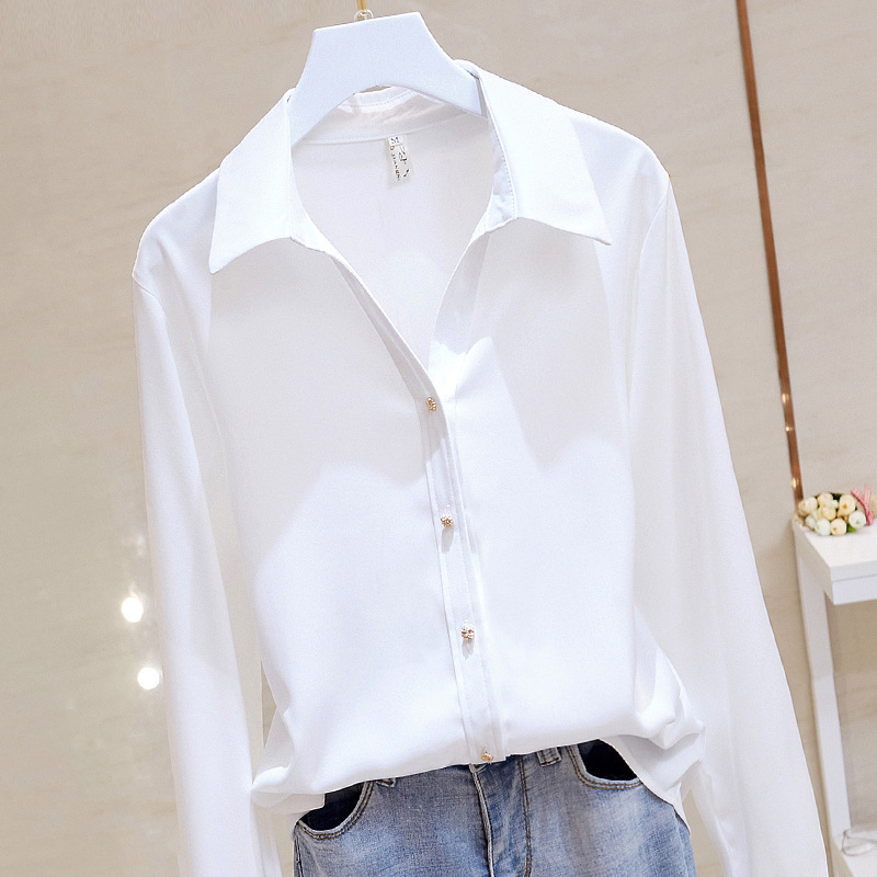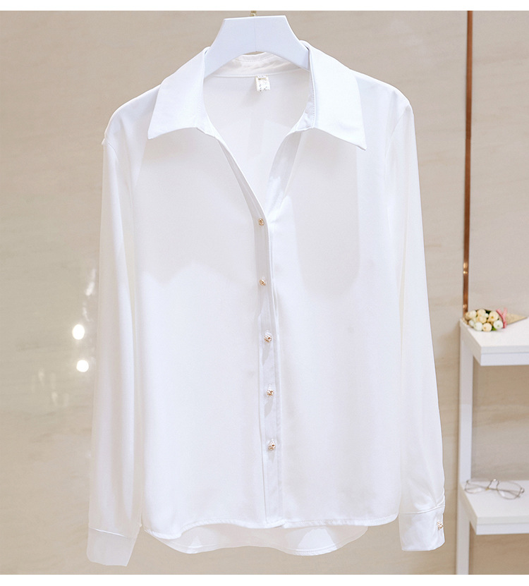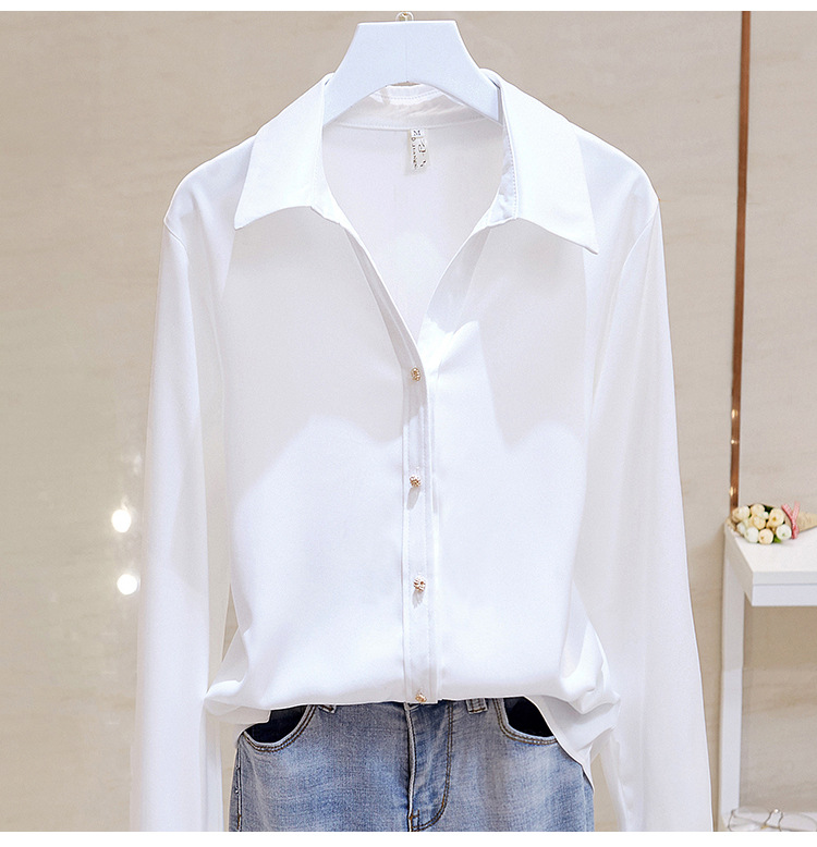 고급 새틴 셔츠 여성용 봄 느슨한 긴팔 우아한 세로 셔츠 메탈 버클 세련된 슬림 쉬폰 셔츠스토어 가기