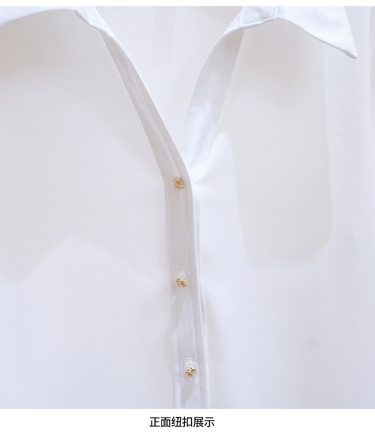 고급 새틴 셔츠 여성용 봄 느슨한 긴팔 우아한 세로 셔츠 메탈 버클 세련된 슬림 쉬폰 셔츠